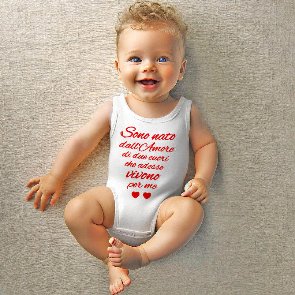 -2 cuori Body neonato canotta con frase d’amore di mamma e papà
