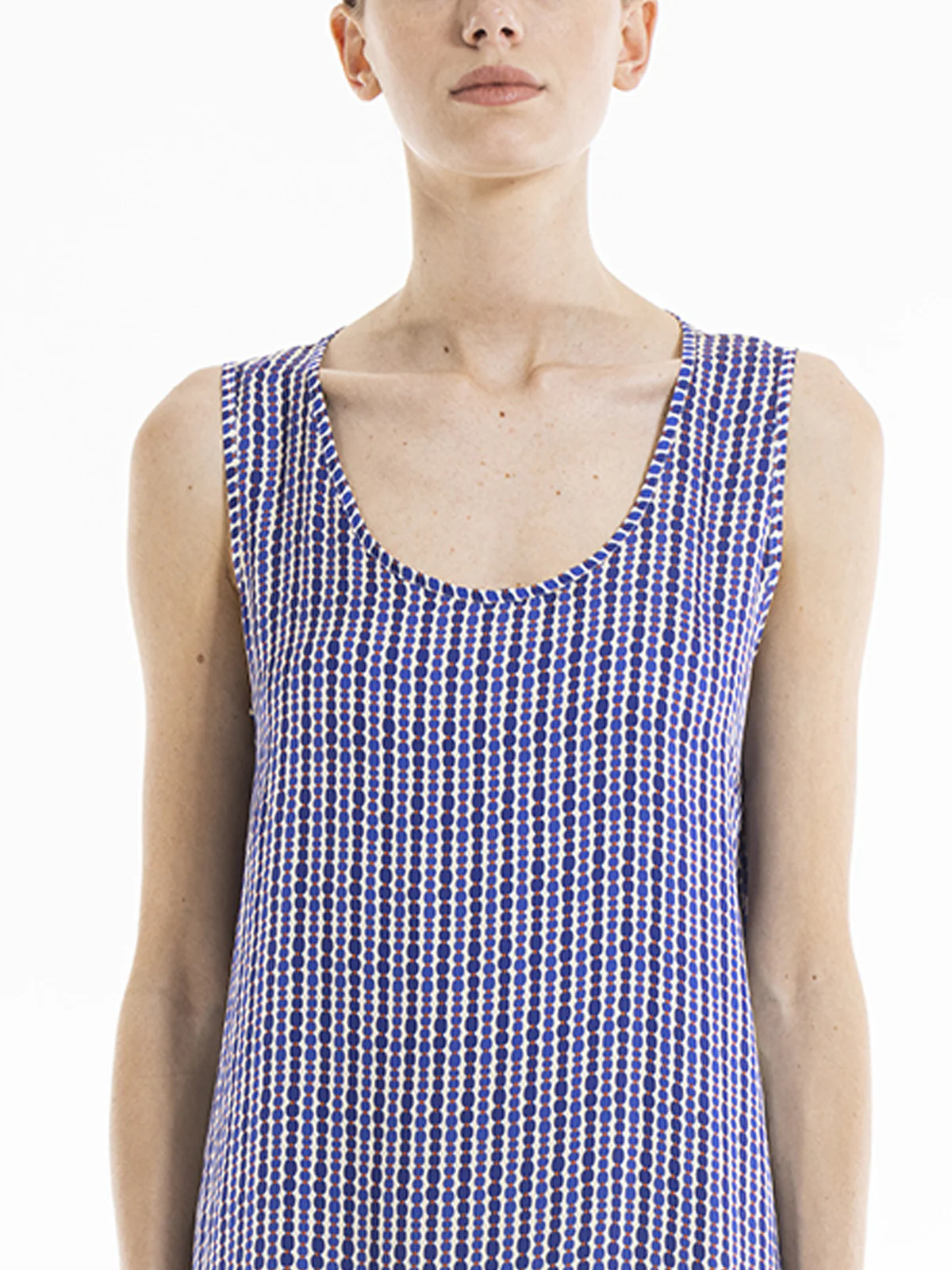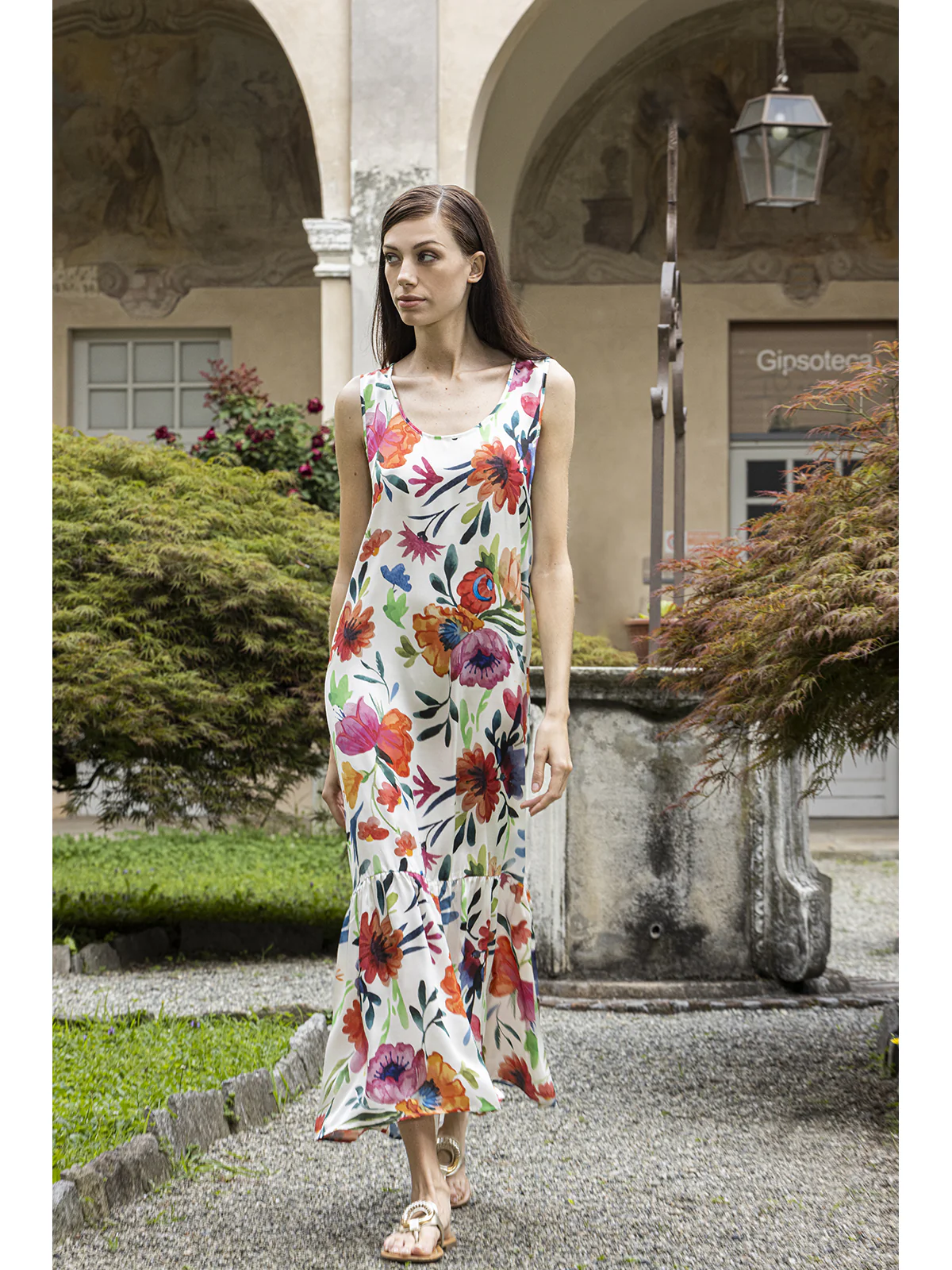 Abito donna in fresco jersey di puro cotone naturale. Modello lungo con scollo serafino ampio, in tessuto con stampa in fantasia esclusiva. Pratico e versatile si rivela adatto a svariate occasioni d’uso. Qualità ed eleganza firmata Alpina. SCOLLO AMPIO SPALLINA LARGA DETTAGLIO: BALZE FIBRA NATURALE SULLA TUA PELLE RAFFINATA STAMPA FANTASIA