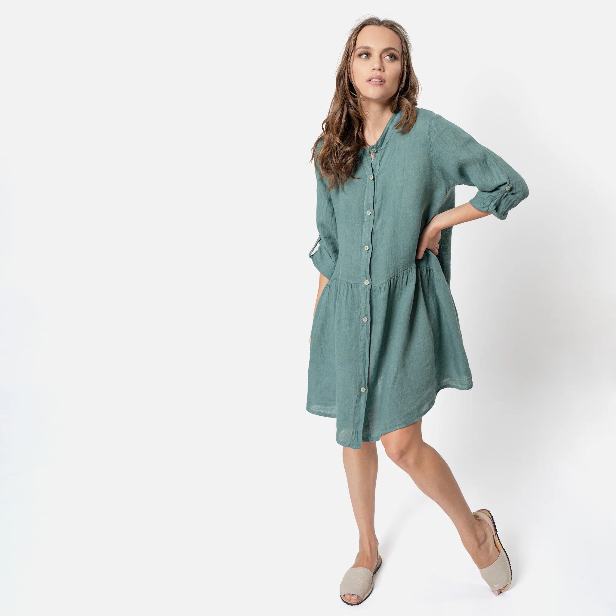 Abito a balzaChiusura con bottoniCollo alla coreanaRegular fitTessuto leggeroMade in Italy100% lino 2188-AGA