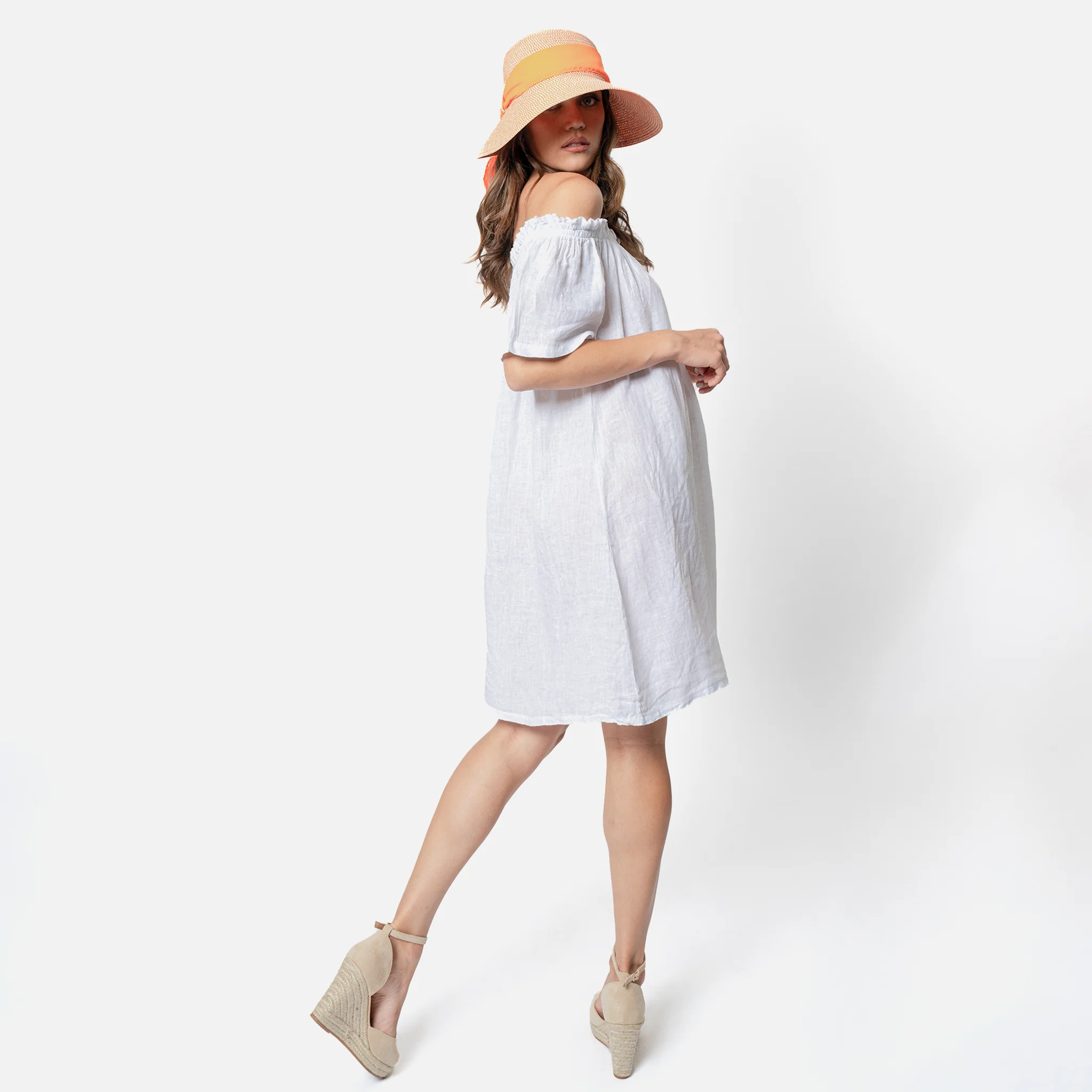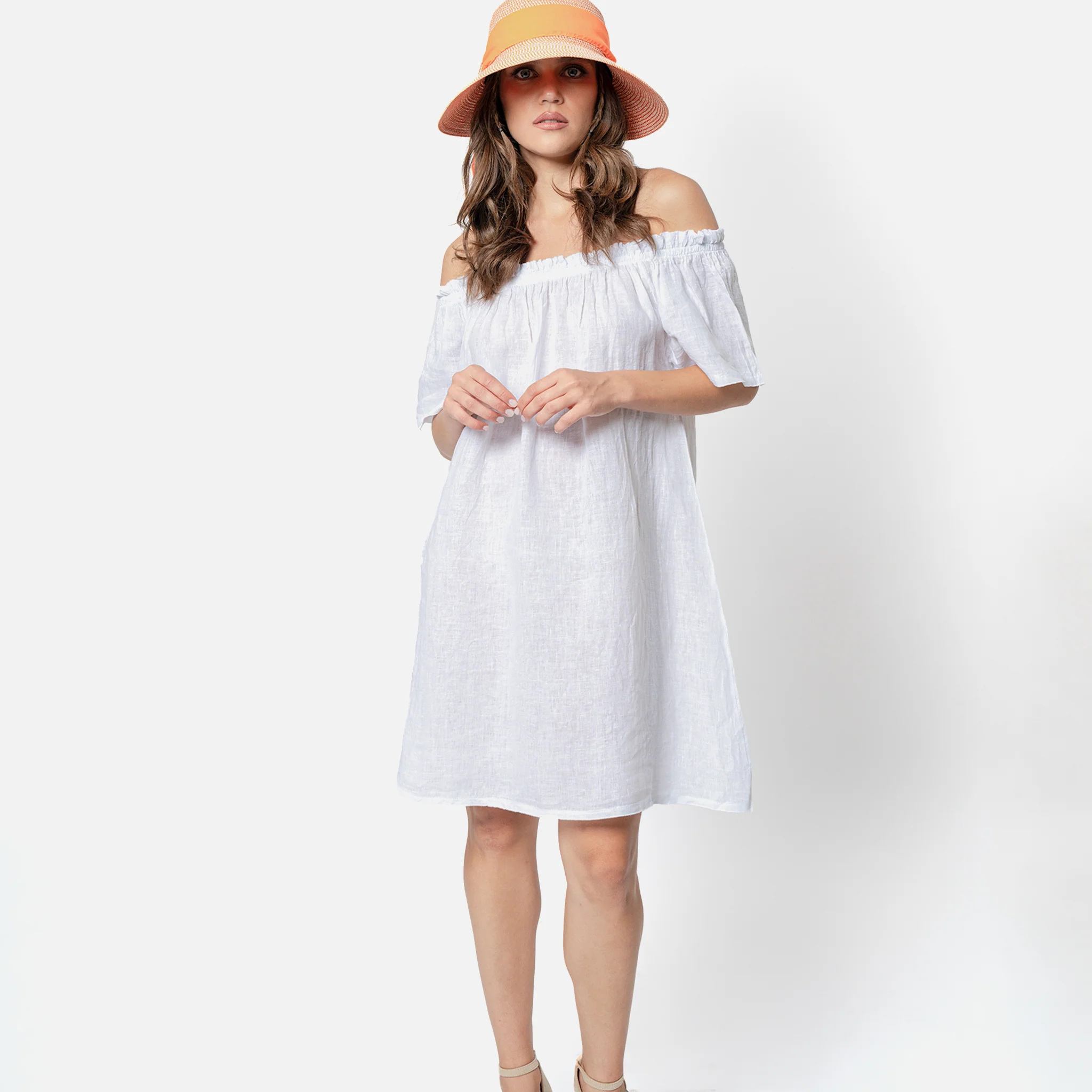 Abito cortoMezze maniche Leggermente scollato100% lino Made in Italy 3863-BIA