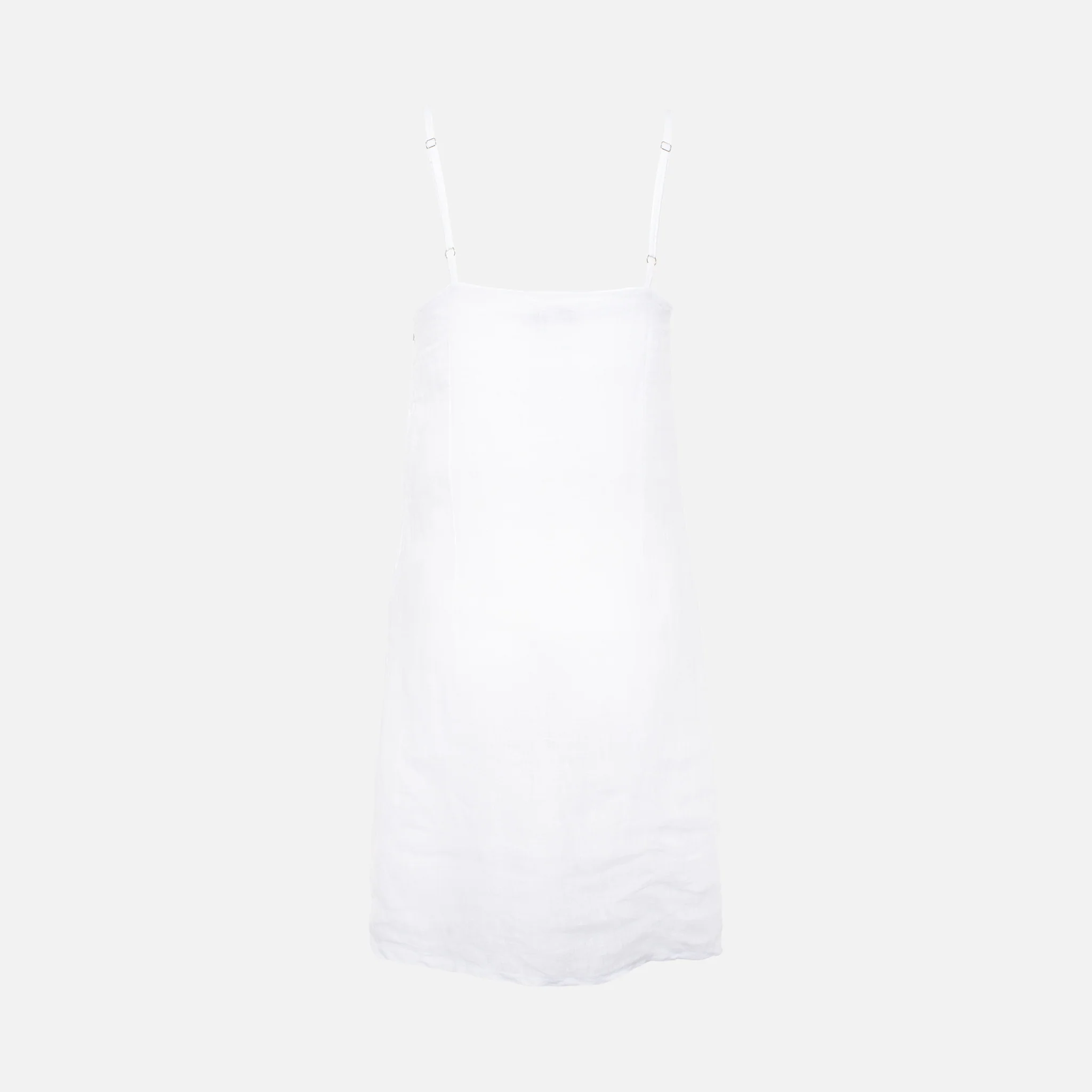 Abito corto Spacco lato sinistro Bretelline 100% lino 5069-BIA