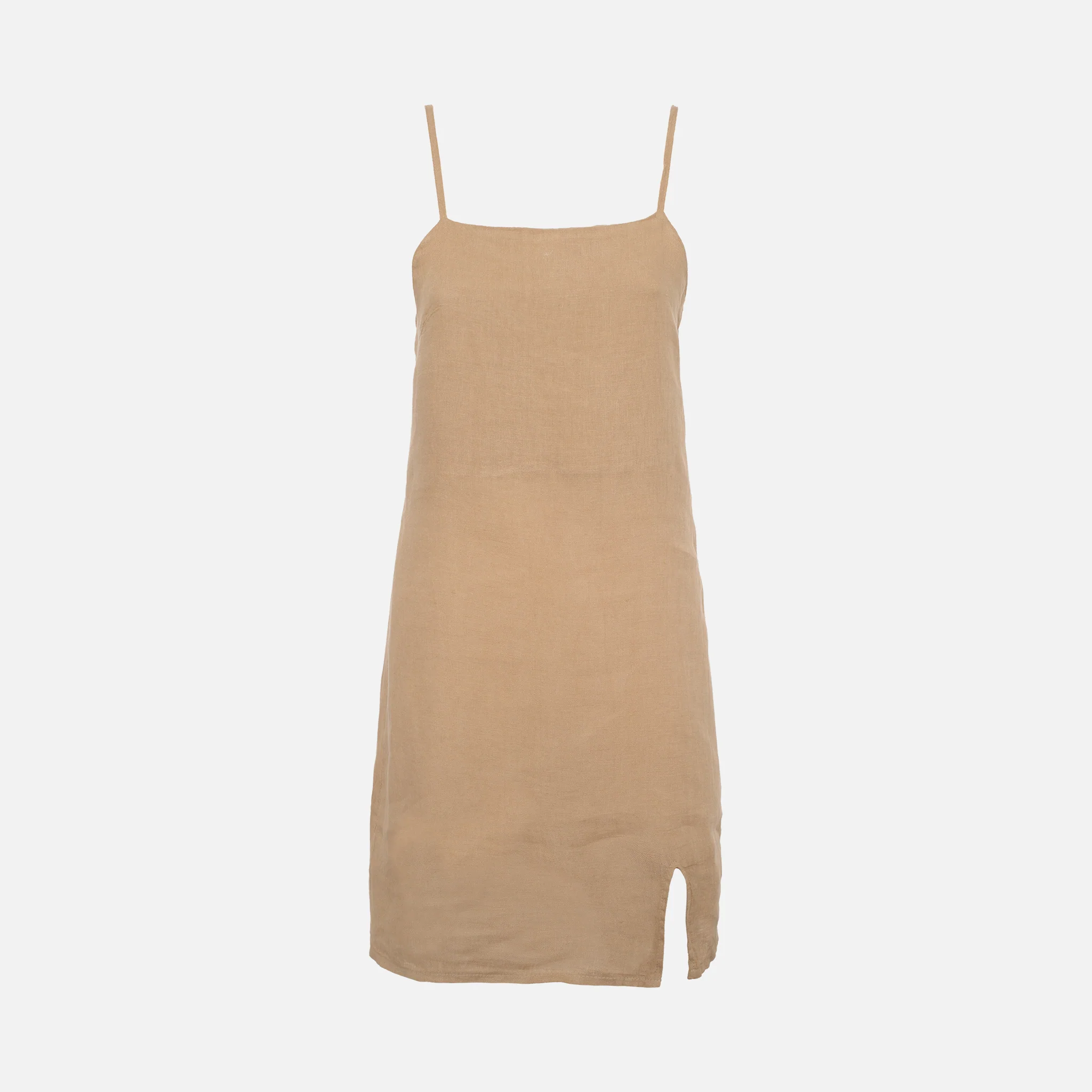 Abito corto Spacco lato sinistro Bretelline 100% lino 5069-CAM