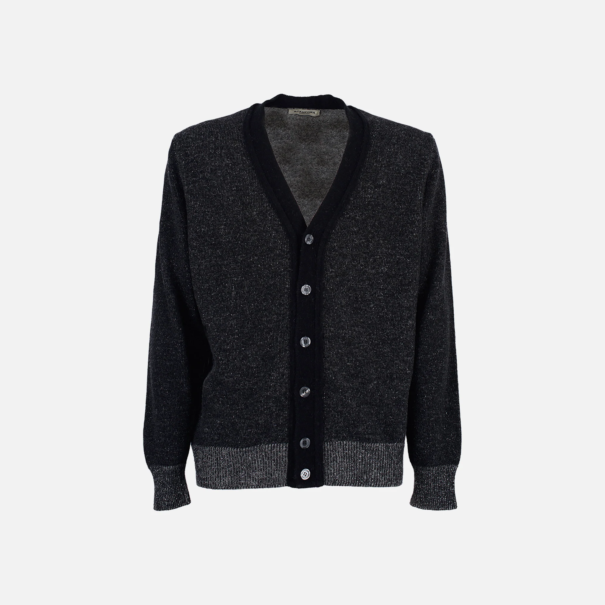 Cardigan in lana scuraProfili a contrastoPolsini e fondo lavorati a costine100% lana merino SO22319C-1