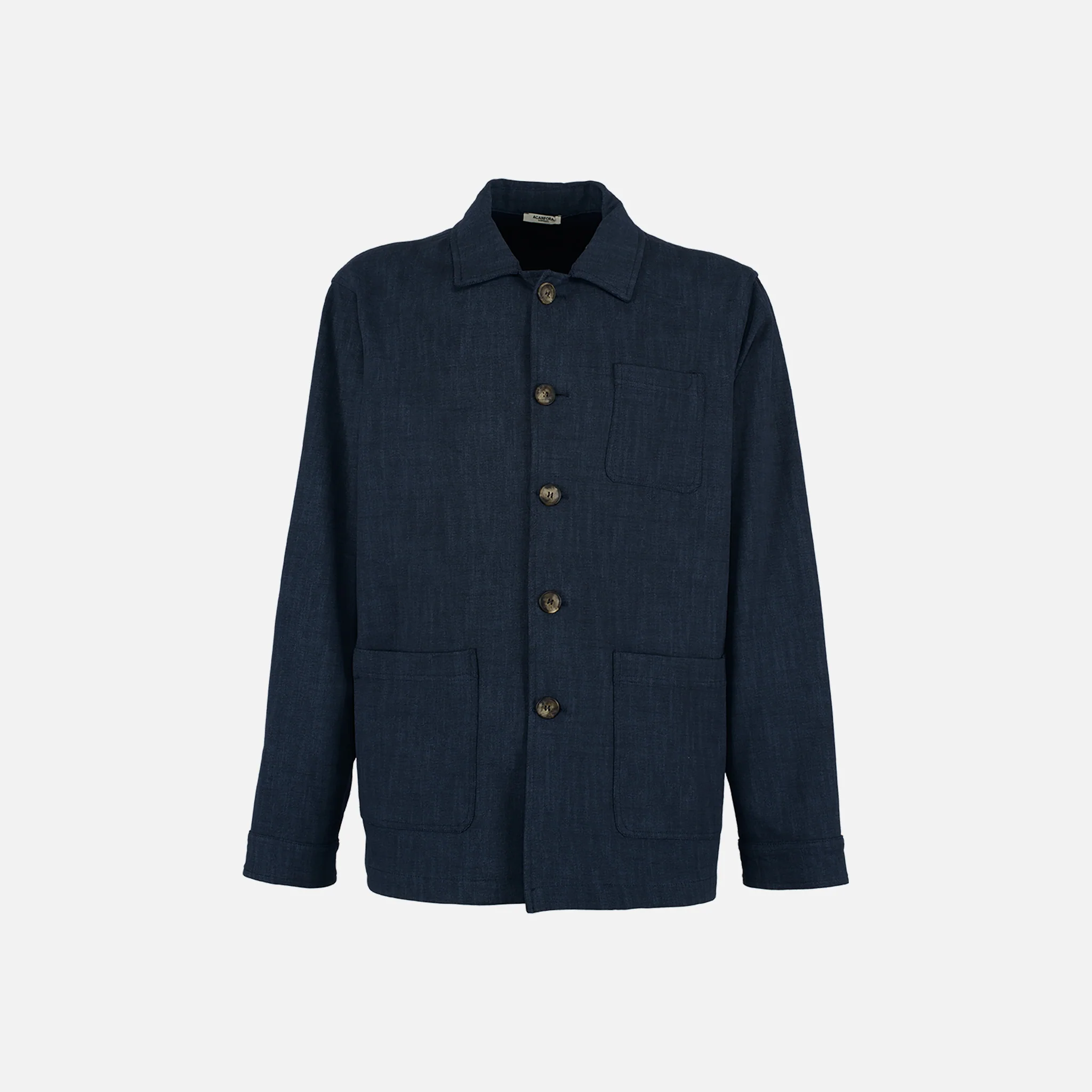 Giacca camicia con colletto Maniche lunghe con bottone sul polsinoTasca applicate sul petto e laterali sui fianchiChiusura frontale con abbottonaturaMade in Italy65% viscosa 30% poliammide 5% elastane UNARIENZO-BLU