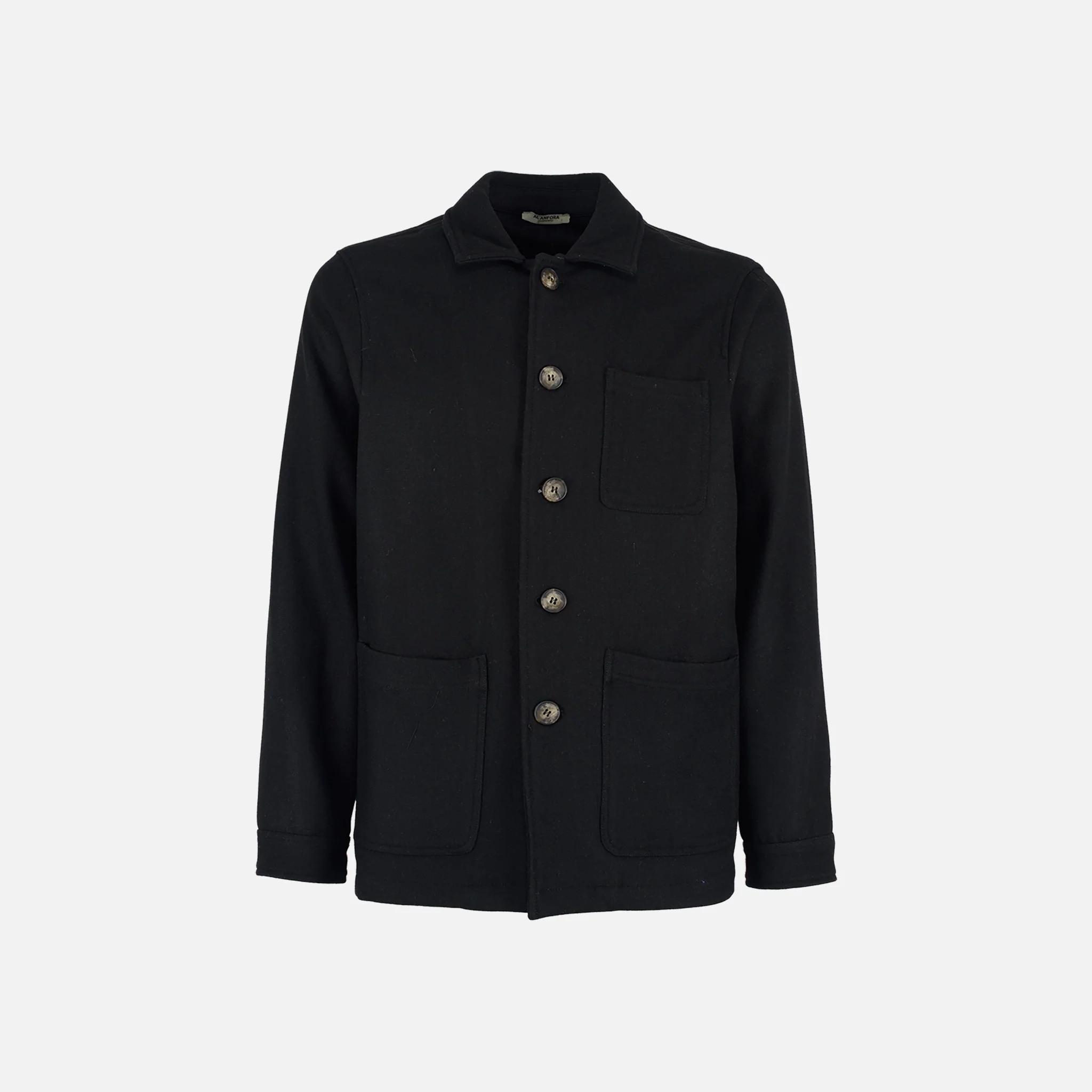Giacca camicia con colletto Maniche lunghe con bottone sul polsinoTasca applicate sul petto e laterali sui fianchiChiusura frontale con abbottonaturaMade in Italy50% lana 42% poliestere %8% viscosa UNFORNILLO-NER