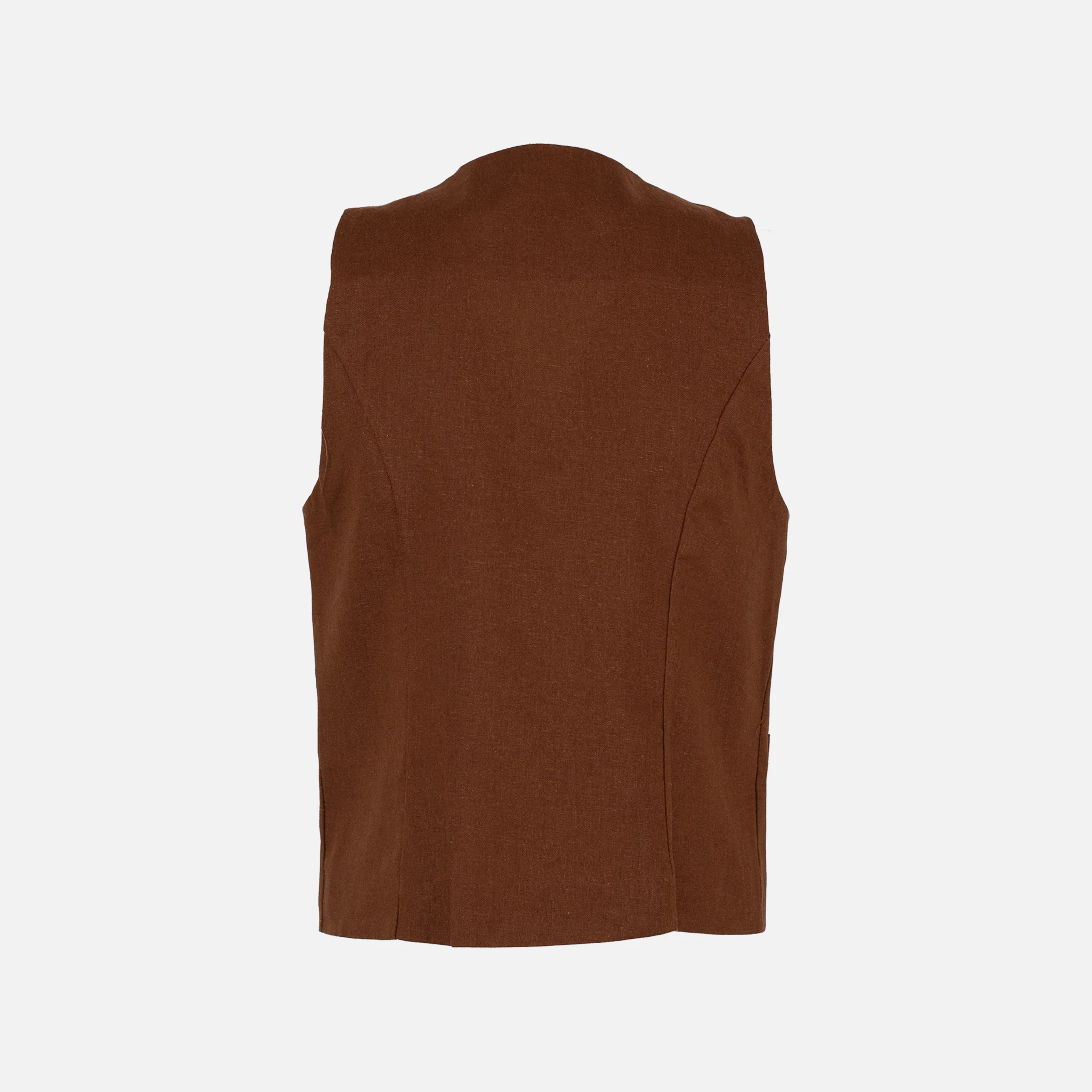 Gilet con bottoiniSenza maniche55% lino 45%viscosa T3022-MOR