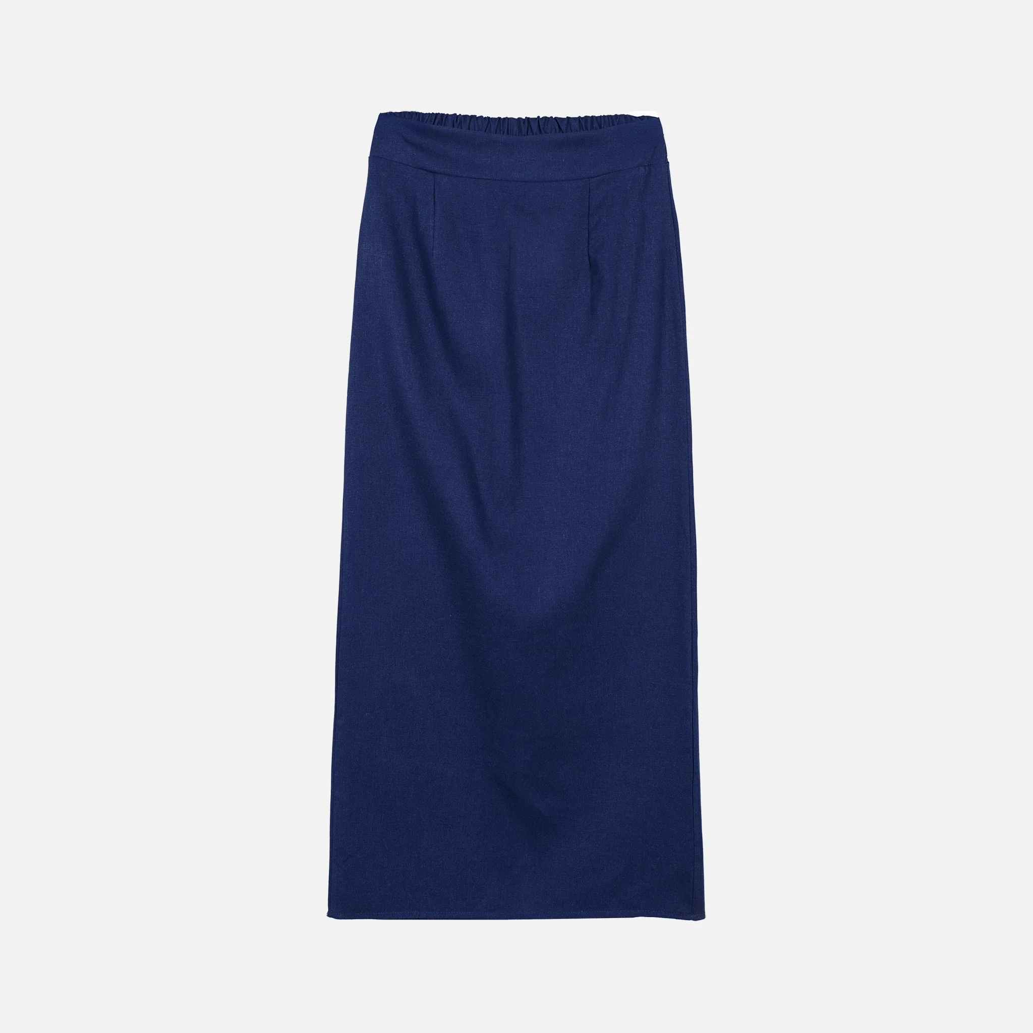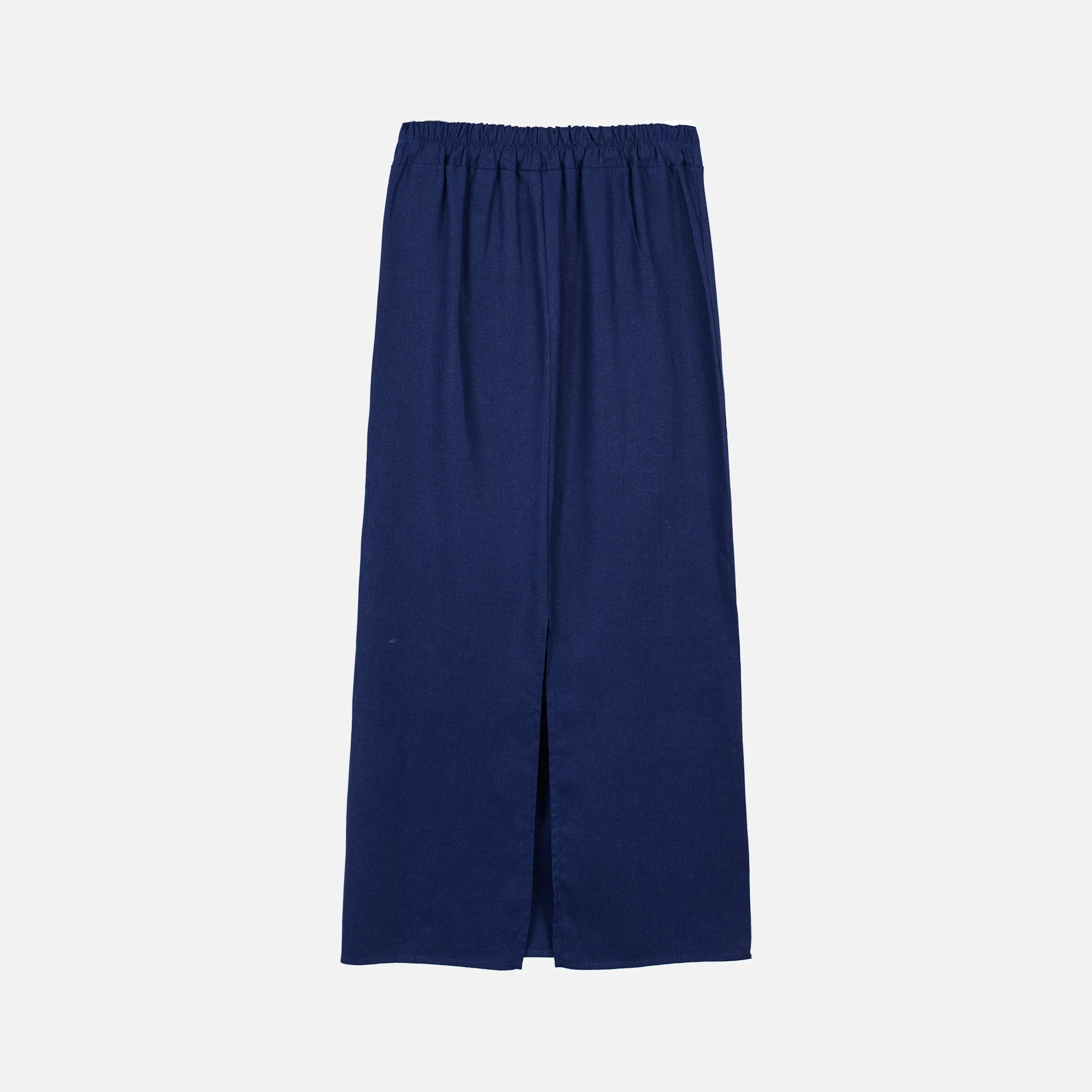 Comoda vita elasticizzata.Spacco sul retro per facilitare i movimentiMade in italy55% lino 45% viscosa 9073-BLU