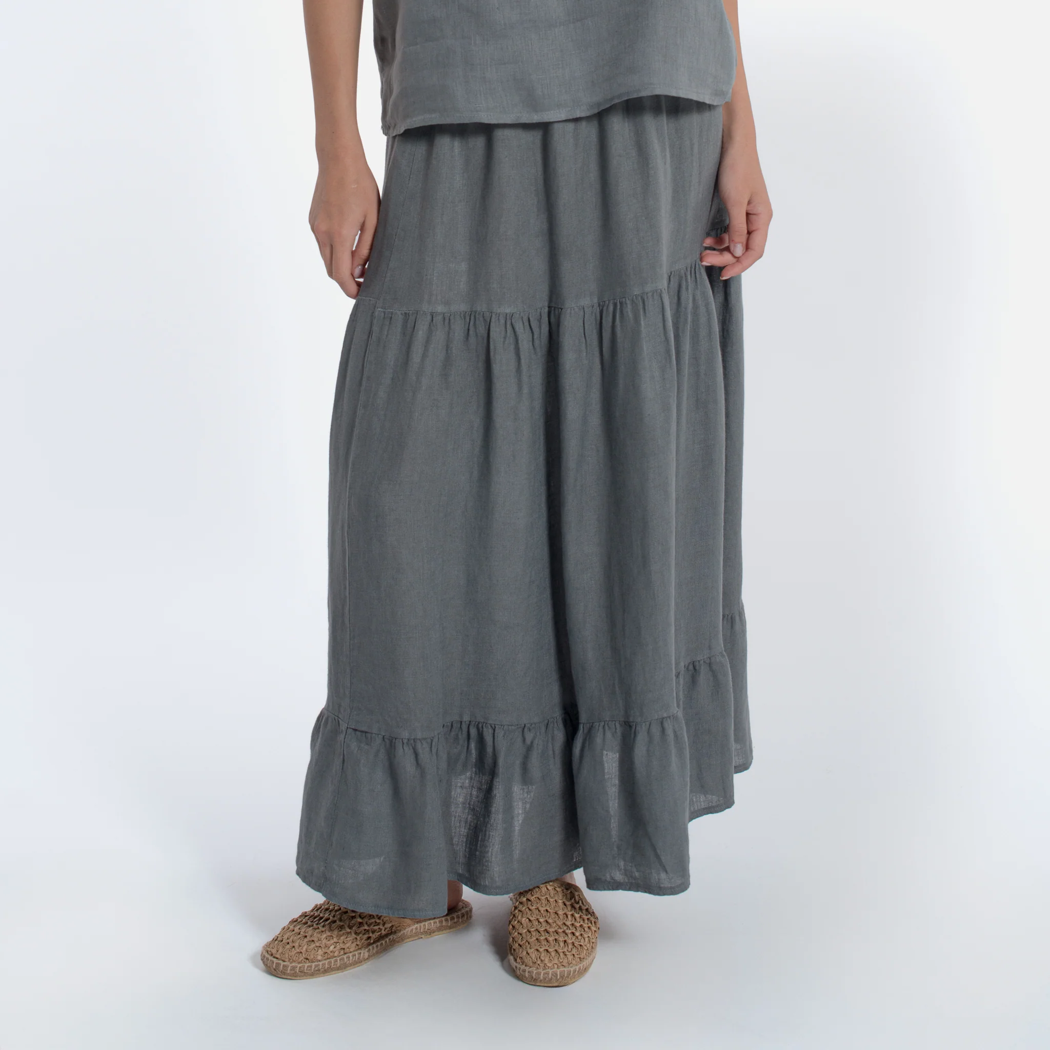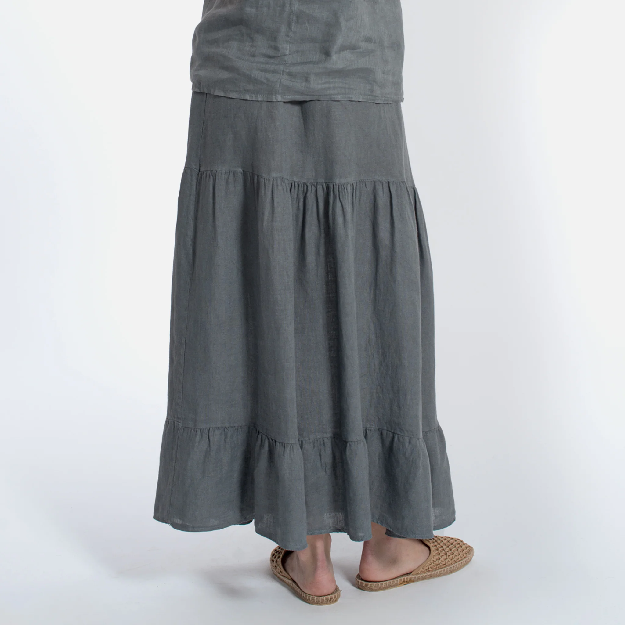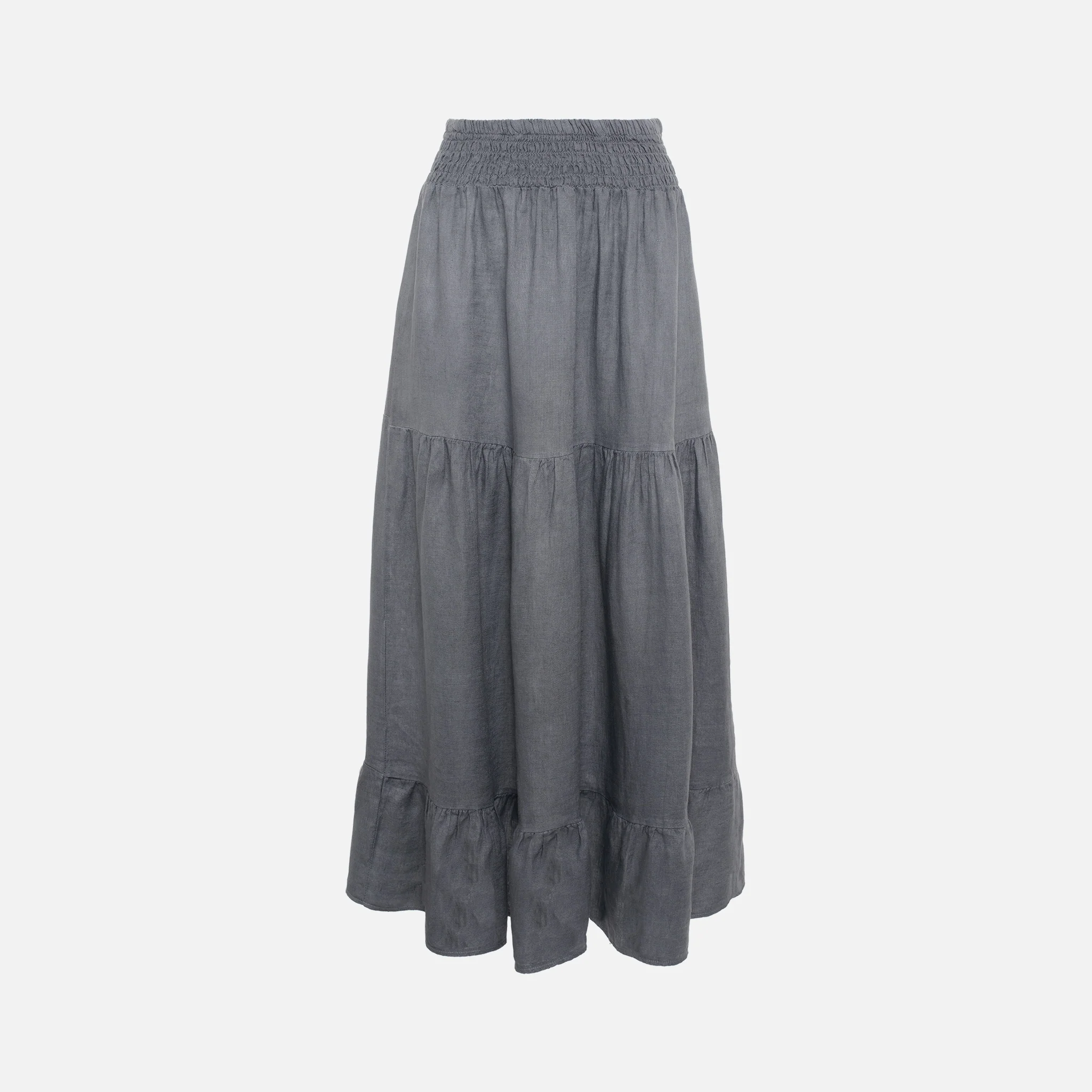 Gonna lungaModello a balzeElastico in vita Made in italy 100% lino 5117-GRI