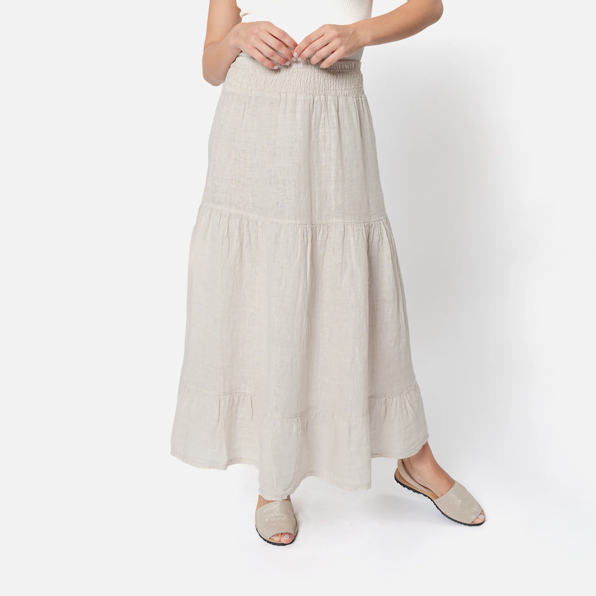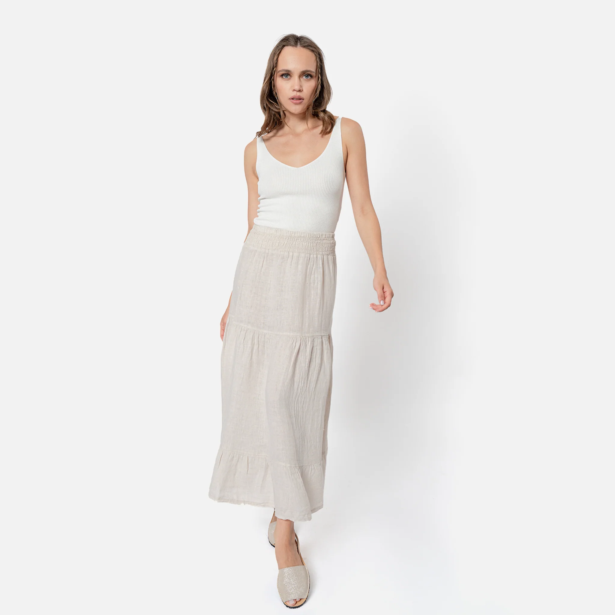 Gonna lungaModello a balzeElastico in vita Made in italy 100% lino 5117-BEI