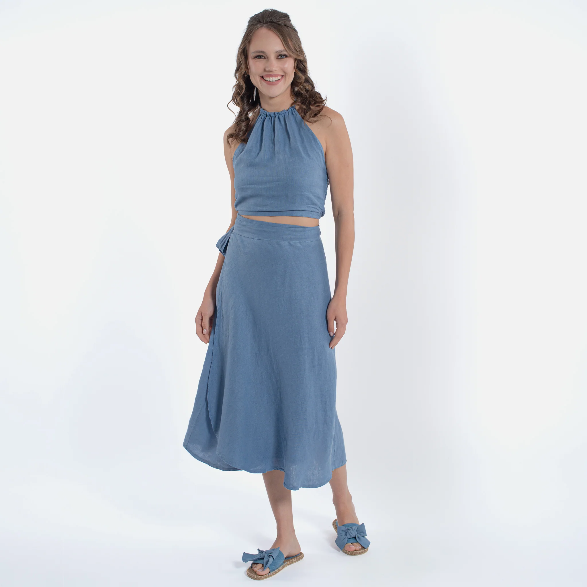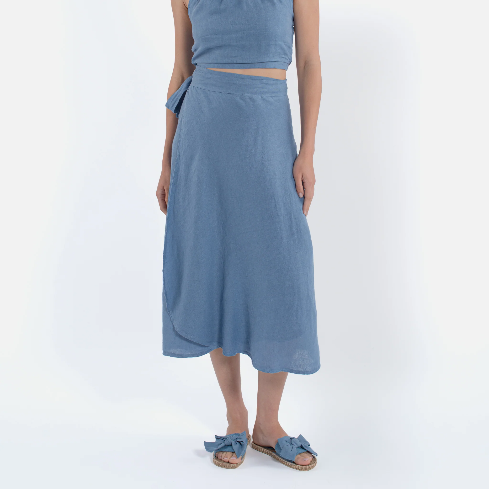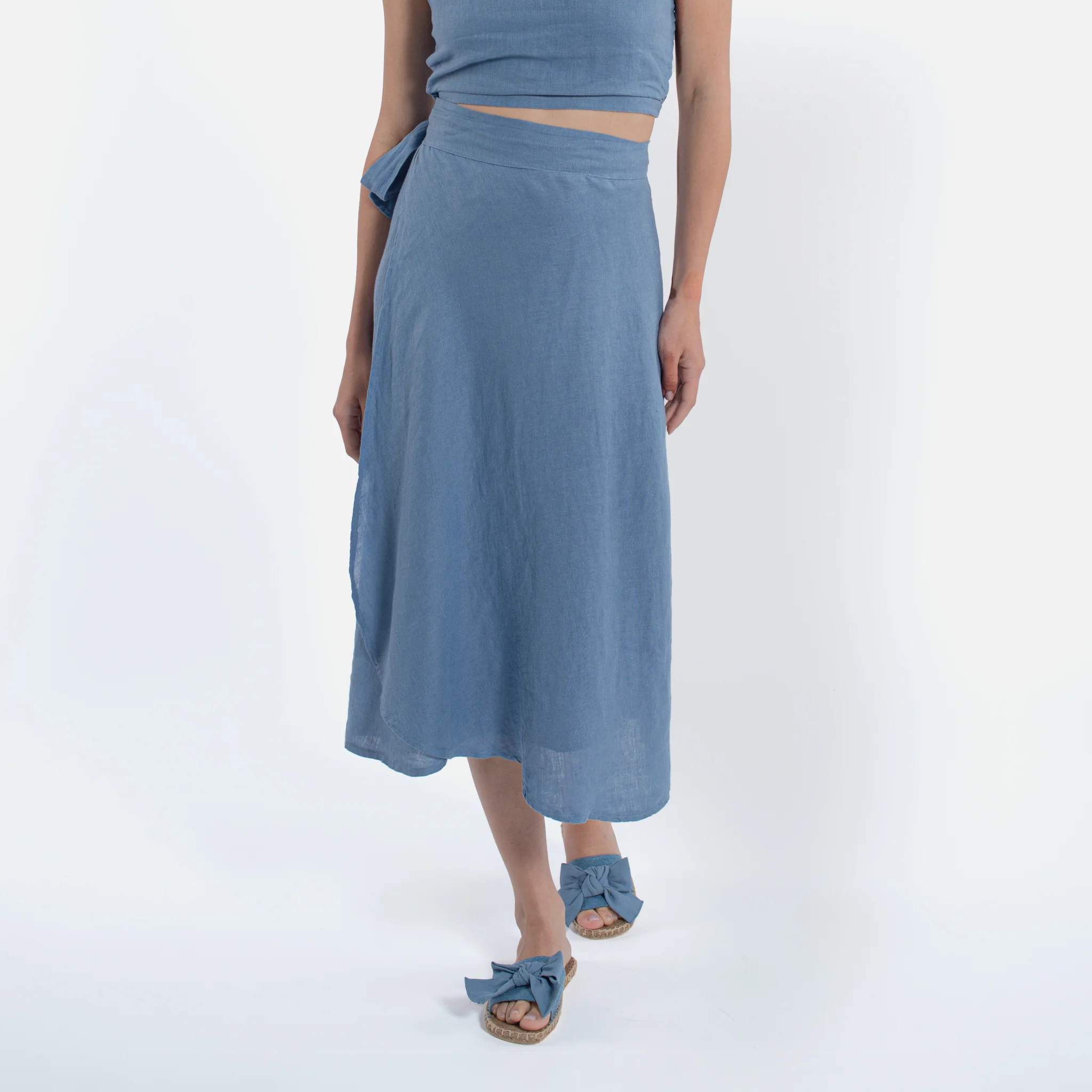 Gonna al polpaccio in lino Modello a portafoglioFascia in vita Made in italy 100% lino 6064-JEA