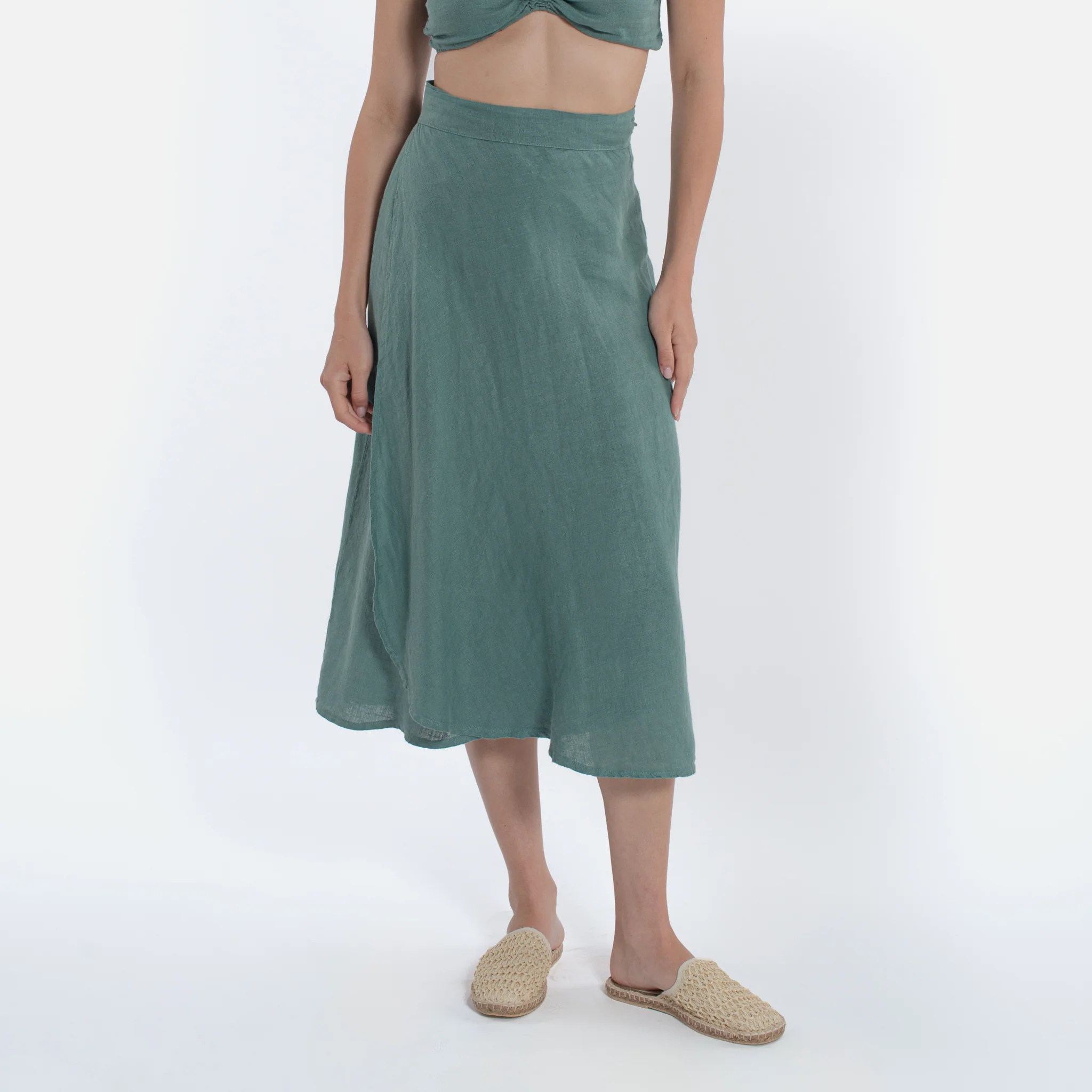 Gonna al polpaccio in lino Modello a portafoglioFascia in vita Made in italy 100% lino 6064-OTT