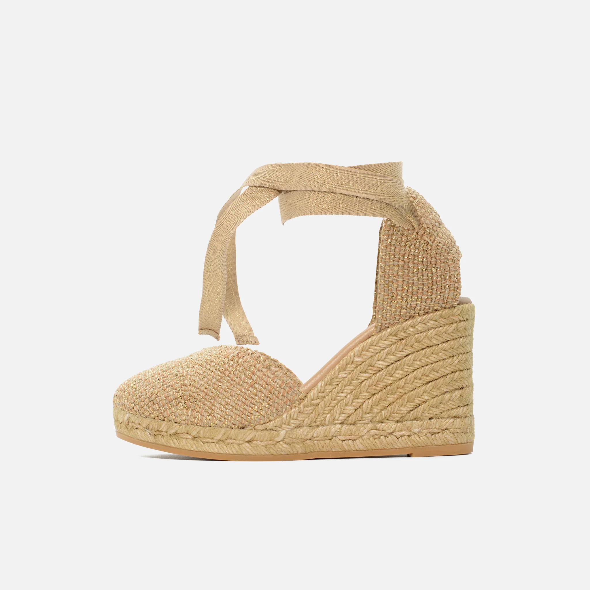 Tomaia in jutaPunta tondaSoletta in pelle con logoZeppa in rafia intrecciata Suola in gommaChiusura con nodo alla caviglia 11559186-PLA
