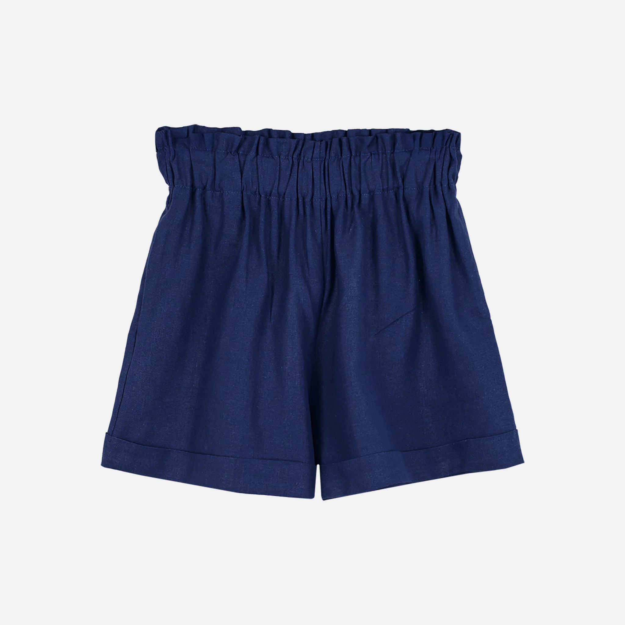 Pantaloncini a vita alta con piegheRealizzati in tessuto morbido e leggeroLunghezza sopra il ginocchio Tinta unitaDue tasche lateraliMade in italy55% lino 45% viscosa 2513-BLU