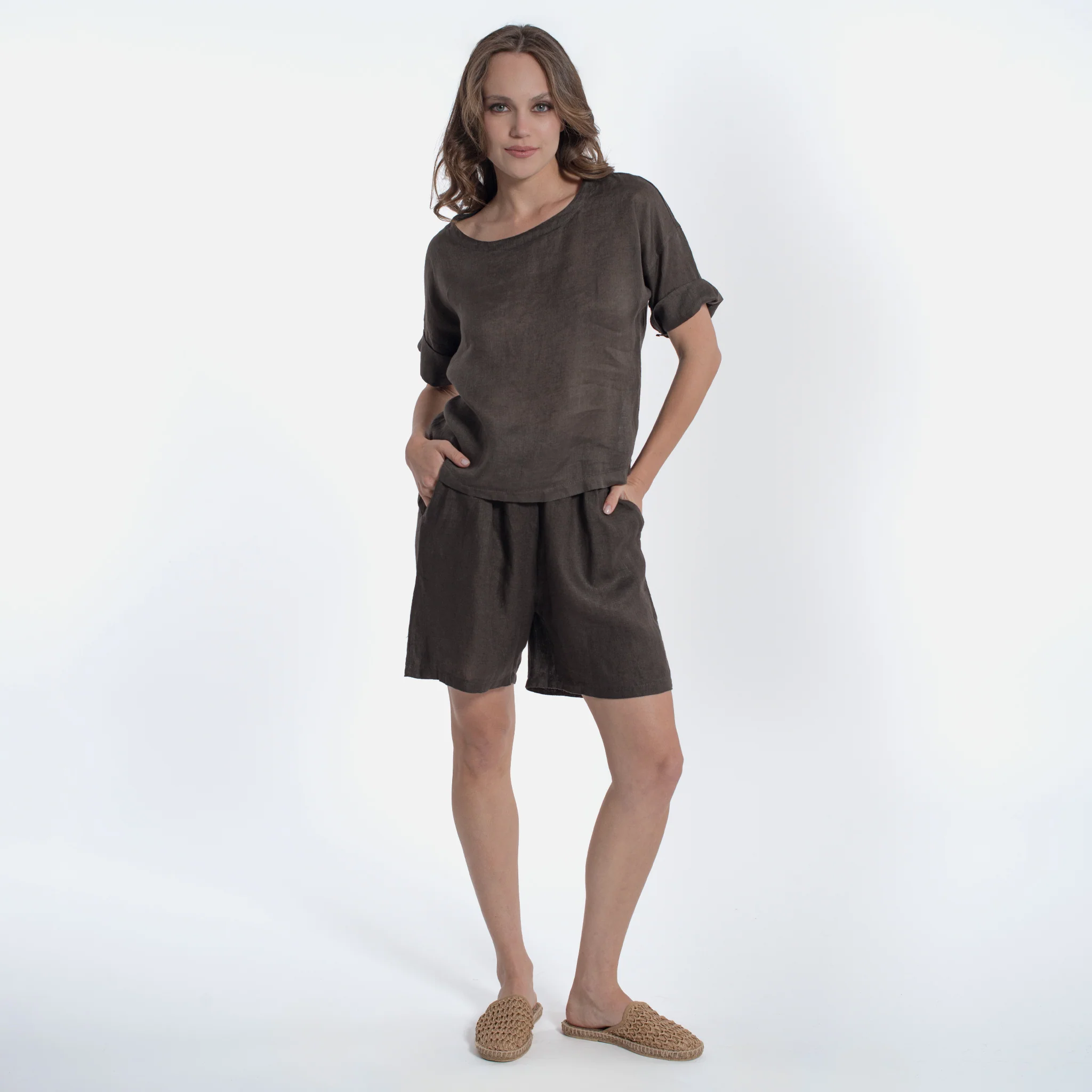 Vita elasticizzata2 tasche laterali Modello morbido Regular fitTessuto leggero Made in Italy 100% lino 3678-MOR