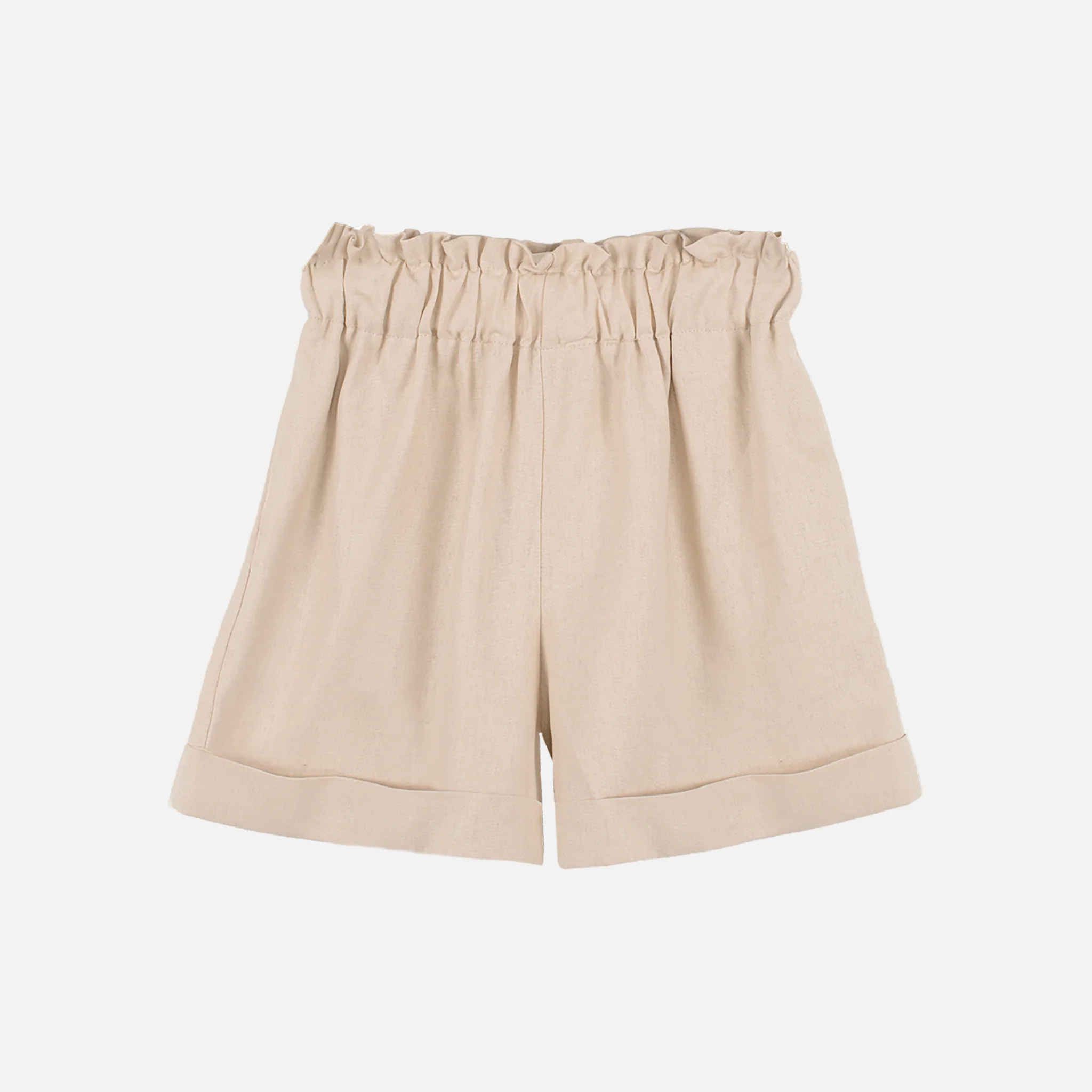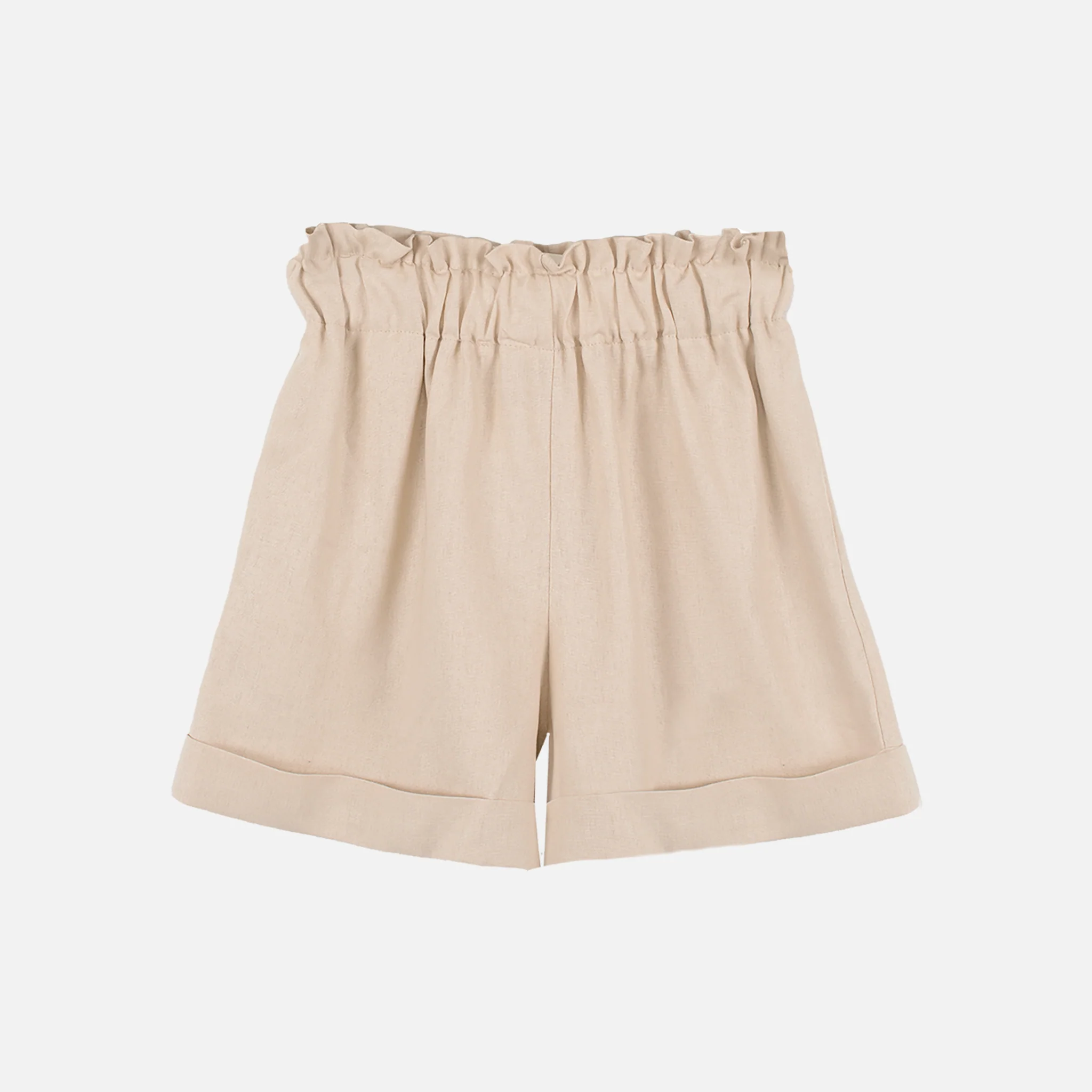 Pantaloncini a vita alta con piegheRealizzati in tessuto morbido e leggeroLunghezza sopra il ginocchio Tinta unitaDue tasche lateraliMade in italy55% lino 45% viscosa 2513-BEI