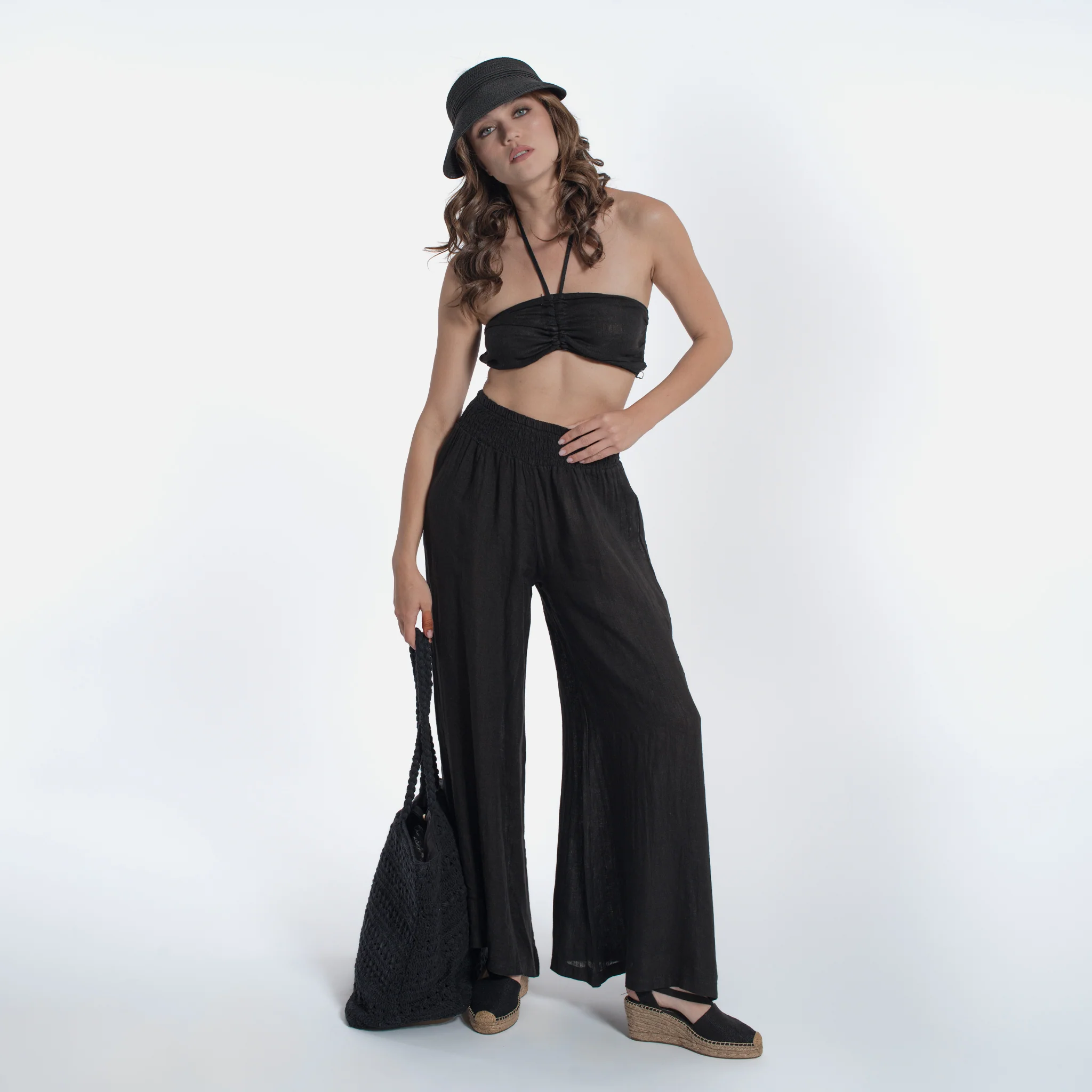 Top aperto dietro Allacciato al collo Made in Italy 100% lino 8451-NER
