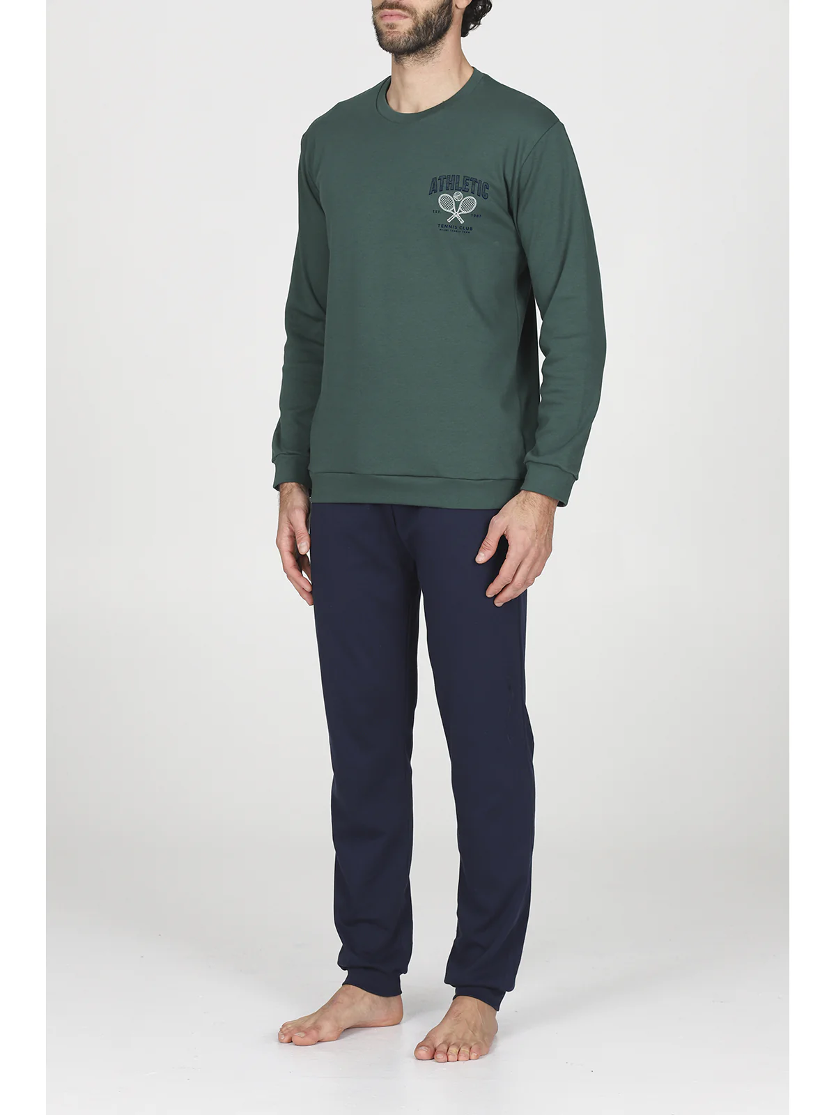 Un pigiama minimalista per l’uomo moderno che cerca comfort senza compromettere lo stile. Questo modello presenta una maglia girocolloin tinta unita con piccola personalizzazione a stampa. I bordi in morbido interlock di cotone garantiscono una vestibilità piacevole e una sensazione di avvolgenza sulla pelle, mentre i pantaloni coordinati completano il look con praticità e classe. Perfetto per le notti di relax a casa o per momenti di svago nel weekend invernali. Tutta la qualità ed il comfort a marchio Alpina.
