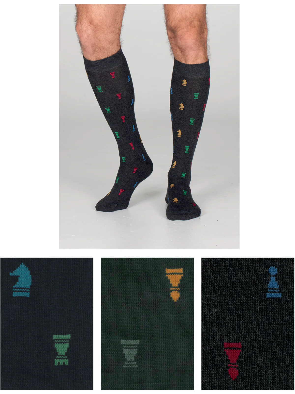 Calze sottoginocchio uomo Disegno in alta definizione Fantasia “scacchi” Coordinabile con intimo e notte Confezione: 3 paia assortite