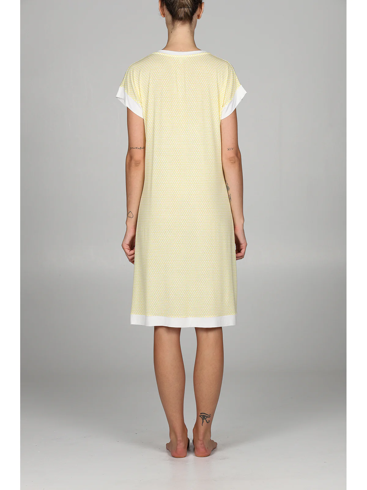 Camicia da notte donna in morbido jersey di viscosa. Maglia modello mezza manica con eleganti bordi a contrasto. Pratico scollo ampio. Raffinata fantasia a nido d’ape. Comfort moderno per una femminilità classica firmata Alpina. SCOLLO AMPIO MANICHE AD ALETTA DETTAGLIO: BORDO COLLO A CONTRASTO FANTASIA NIDO D’APE TESSUTO MORBIDISSIMO SULLA PELLE