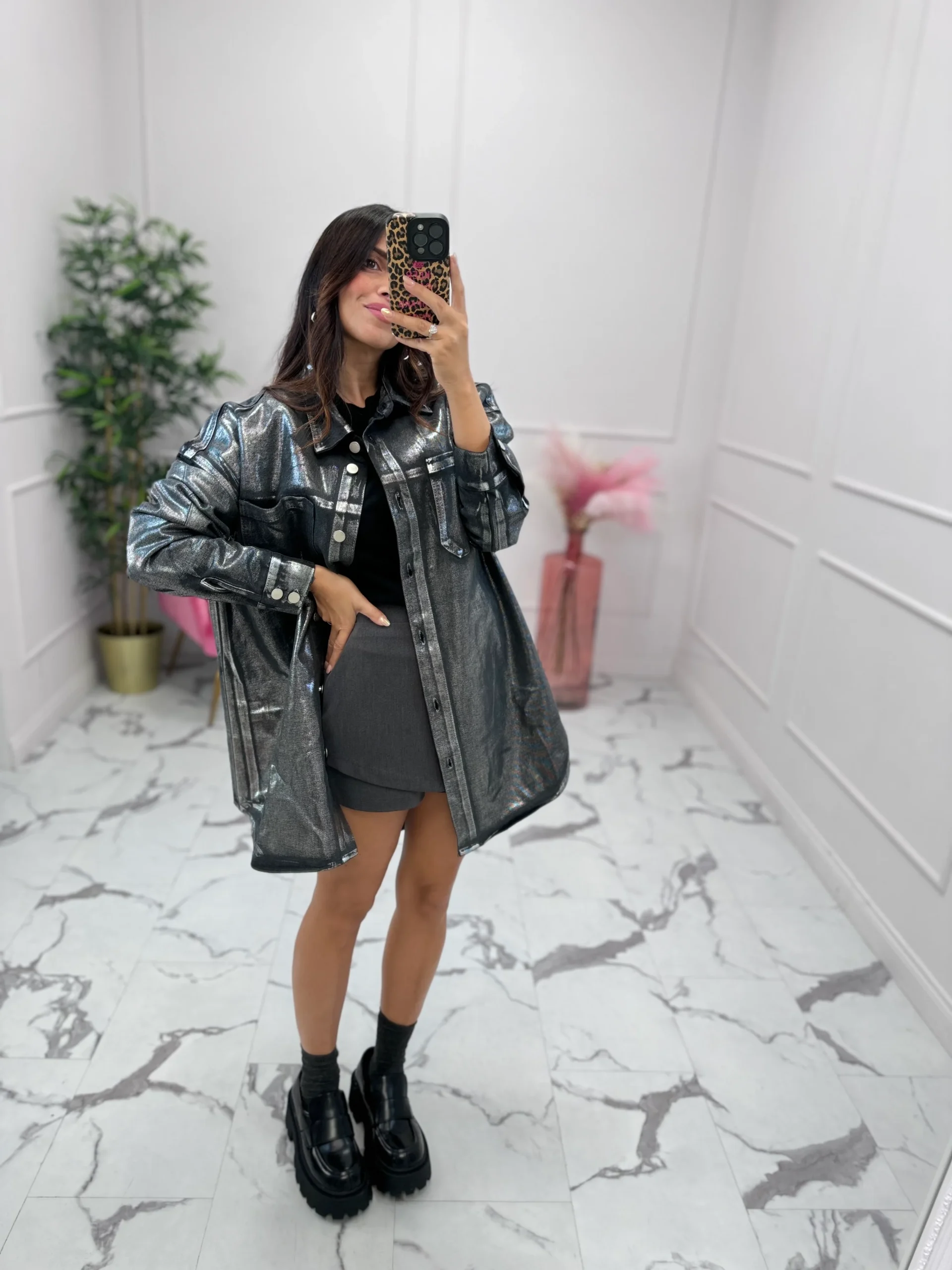 Camicia over effetto spalmato GLAMOROUS