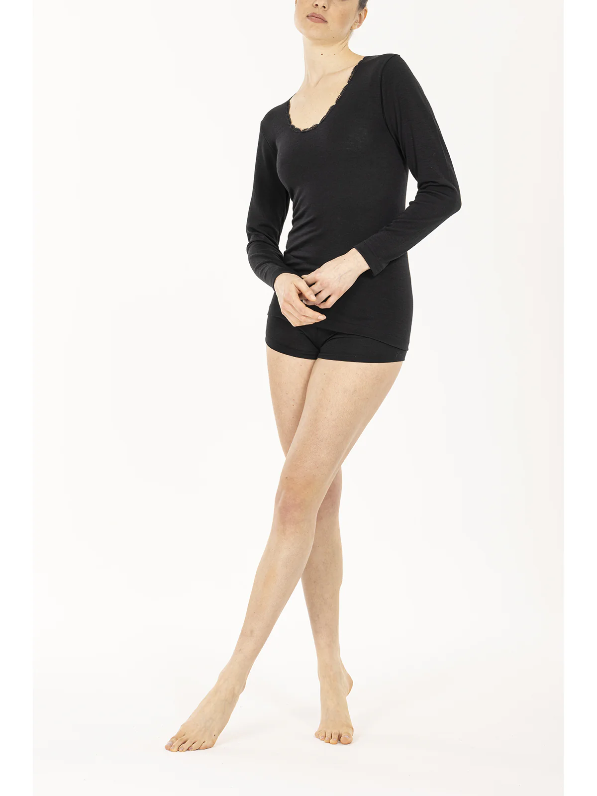 Canotta manica lunga con pizzo basso