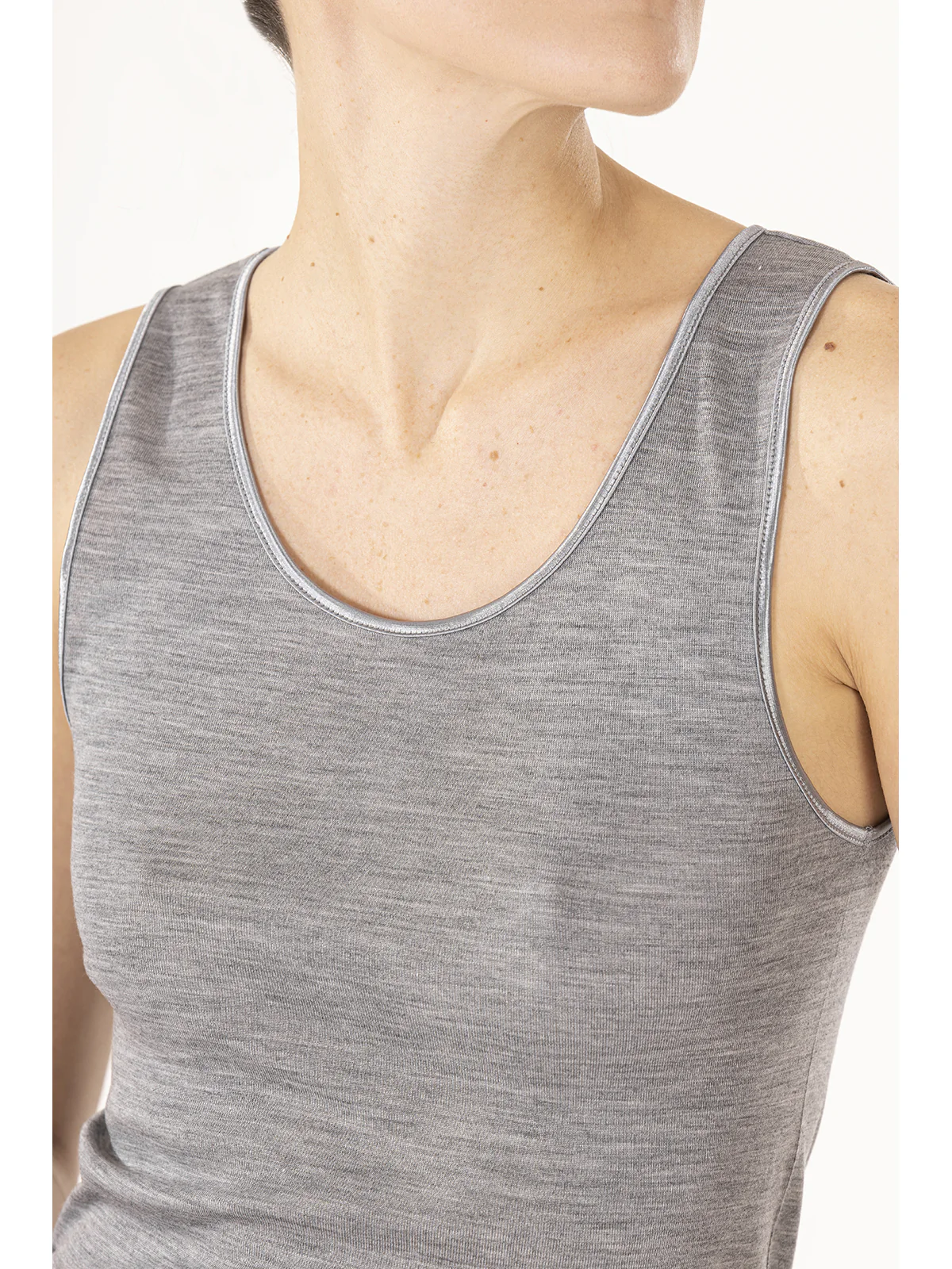 Canotta intima donna modello spallina larga in lana e seta per un massimo comfort e calore. Eleganti bordure in morbidissimo raso. Tutto il tepore della lana senza rinunciare alla lucentezza della seta. Sulla tua pelle solo fibre naturali a marchio Alpina.