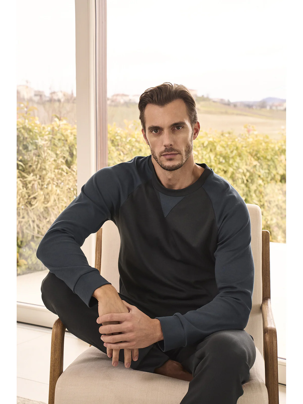 MAGLIA GIROCOLLO DETTAGLI A CONTRASTO PANTALONI IN TINTA UNITA CON POLSINI PREGIATO COTONE SUPIMA NO PILLING PIU’ RESISTENZA AI LAVAGGI E AL TEMPO