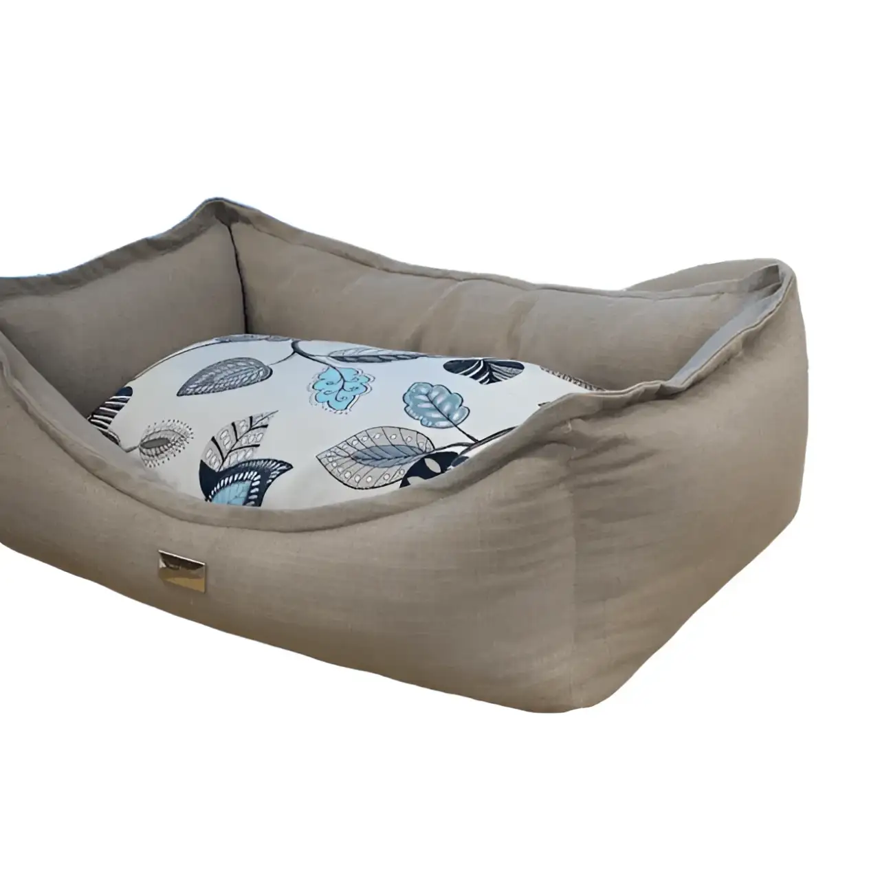 La cuccia è rivestita con un tessuto in lino spesso, prodotto in Italia con materiali di alta qualità, adatto per cani di taglia piccola e media.