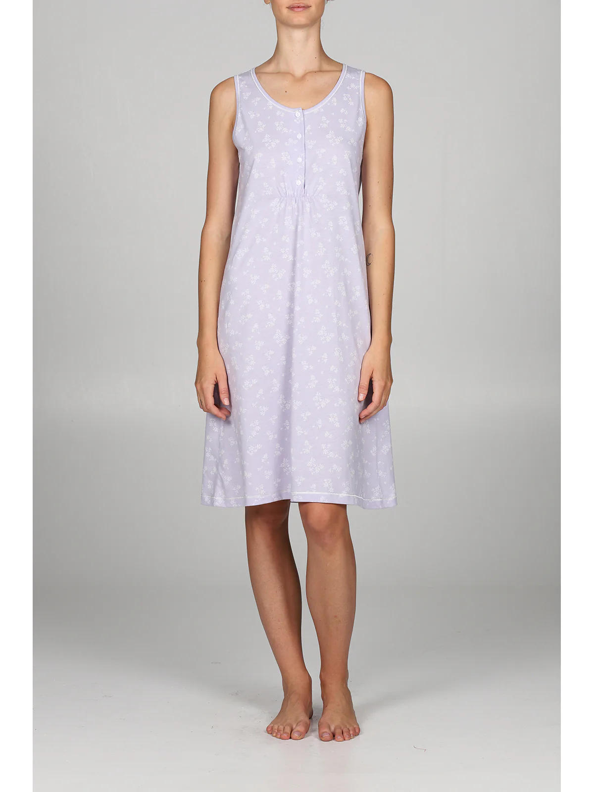 Camicia da notte donna in fresco jersey 30/1 di puro cotone pettinato in tinta unita. Modello spallina larga con apertura profonda e piccolo arriccio. Comfort moderno per una femminilità classica firmata Alpina.