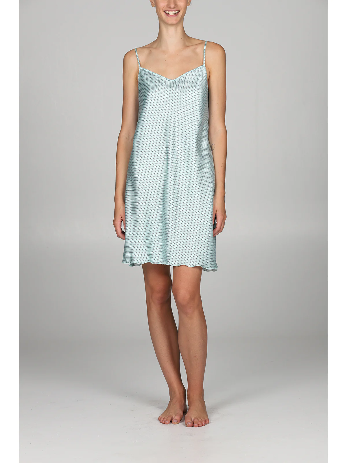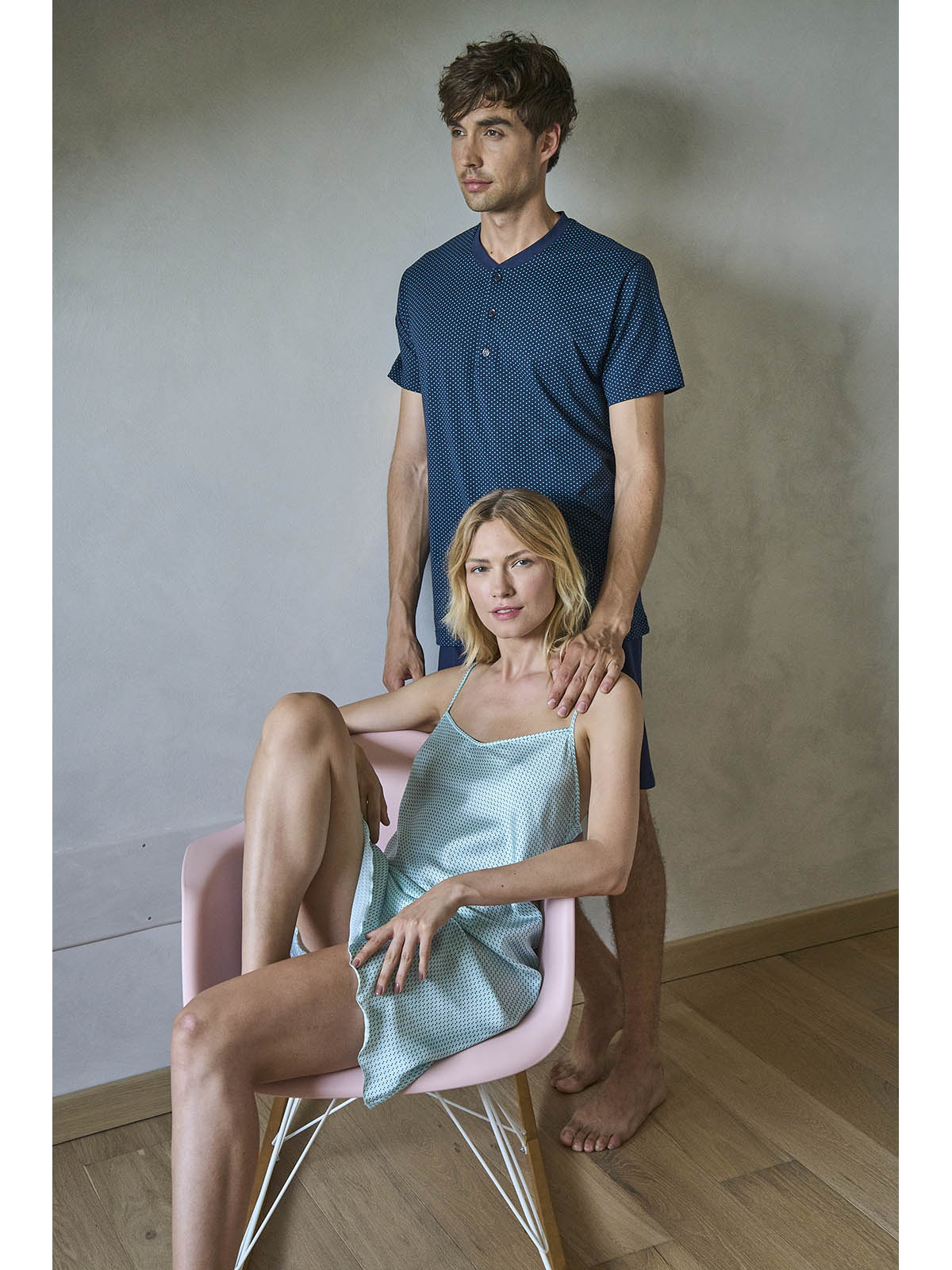 Camicia da notte donna realizzato in lucente raso. Tessuto liscio, in elegante e delicata stampa puntaspillo. Modello top con spalline sottili. Graziosa nella sua semplicità e dalla vestibilità morbida. Lo stile contemporaneo e la qualità di sempre.
