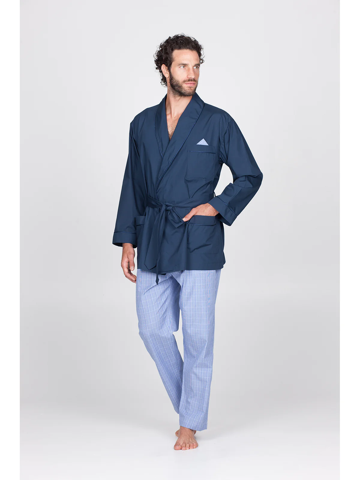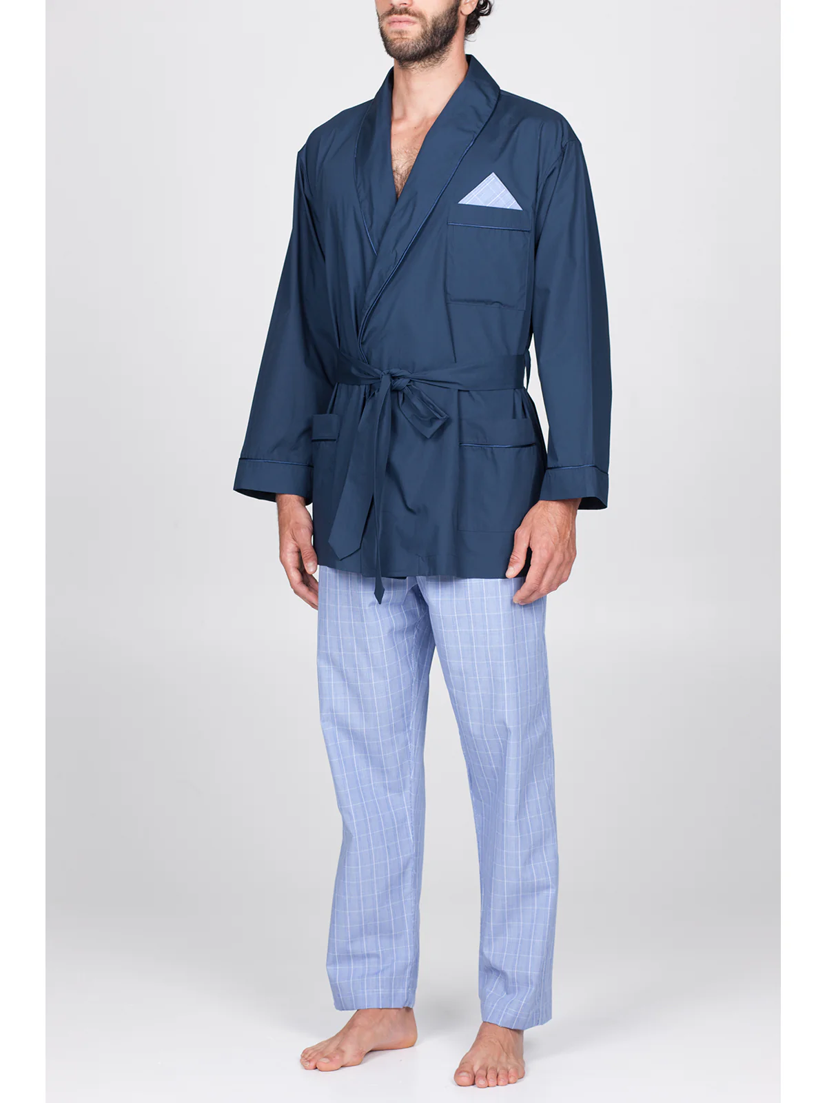 Collo sciallato Chiusura con cintura Tre tasche Dettaglio piping ton sur ton Elegante e raffinato popeline di puro cotone Coordinabile con pigiama fidenza