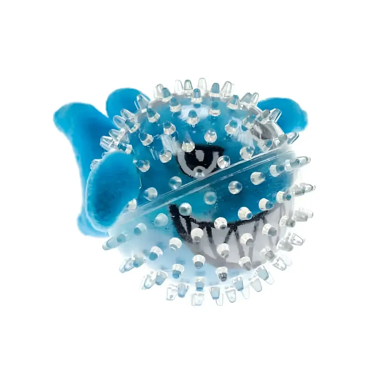 La palla in gomma con morbidi spuntoni è un giocattolo per cani ideale per la pulizia dei denti e il massaggio delle gengive. La presenza del peluche a forma di squalo all’interno del giocattolo incentiva il cane a giocare e a divertirsi.