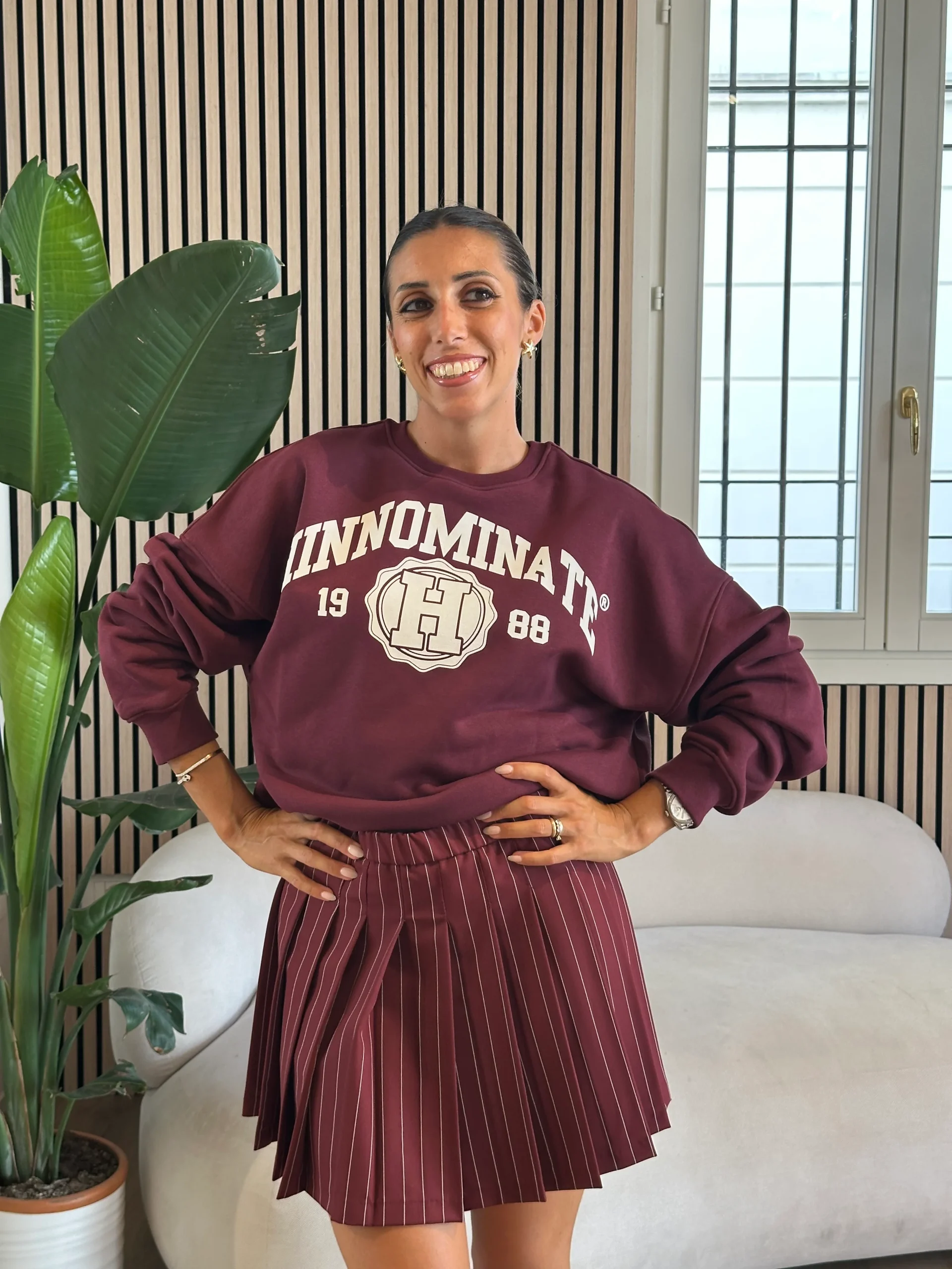 La gonna a pieghe barolo รจ un’aggiunta elegante e sofisticata al tuo guardaroba. Con un vibrante colore barolo e una texture gessata di alta qualitร , questa gonna a pieghe ti farร risaltare in ogni occasione. Aggiungi un tocco di stile alla tua vita con questa gonna versatile e confortevole.