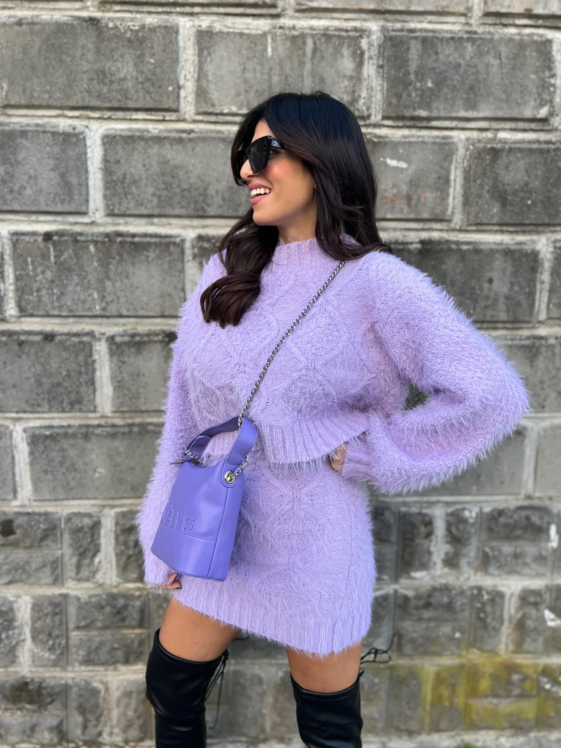 Gonna in maglia, effetto peloso, tessuto morbido e caldo, non punge, vestibilità regolare.