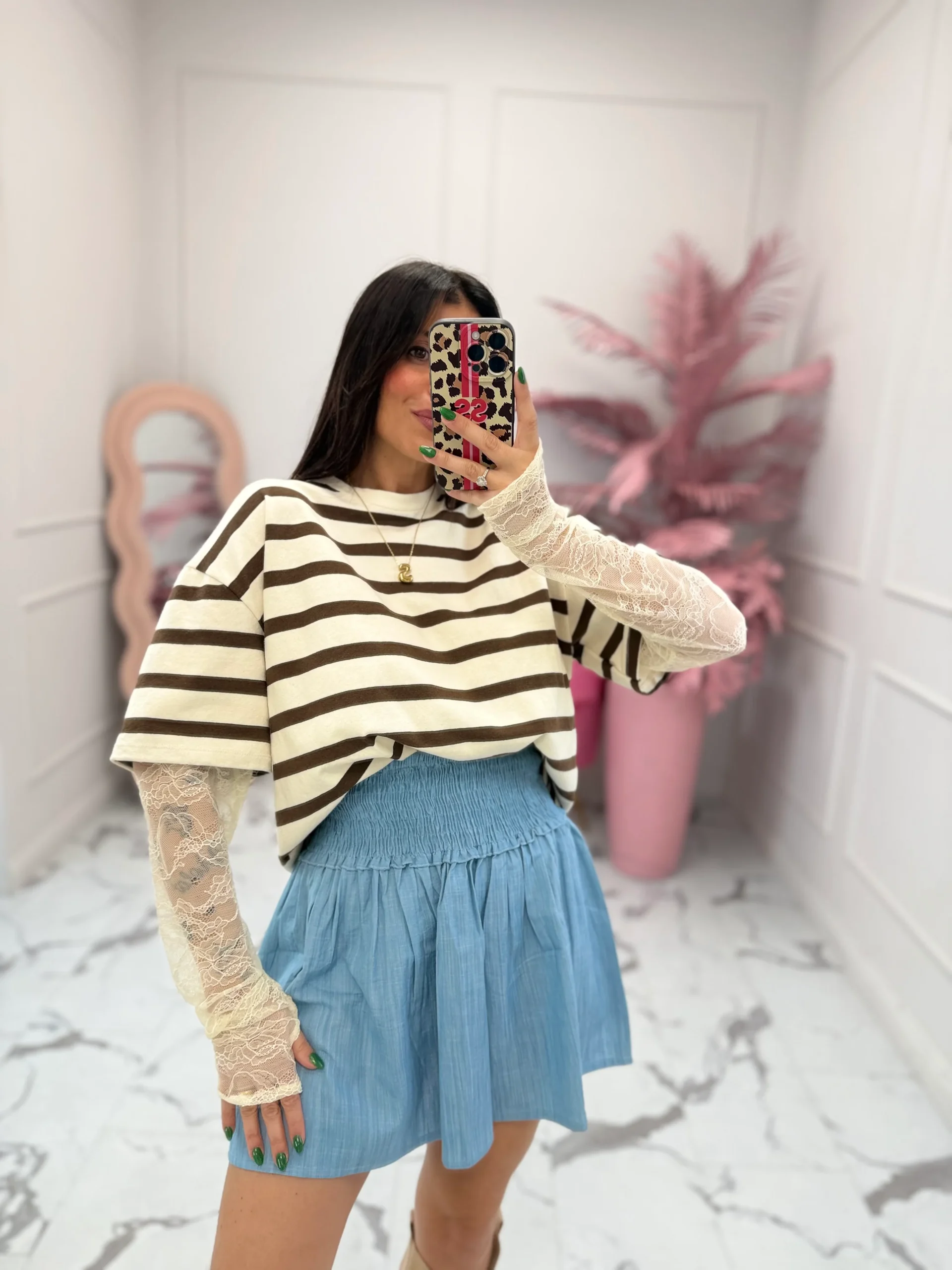 Gonna svasata corta, con elastico in crepe in vita, vestibilità regolare. La modella è alta 160cm e indossa taglia XS. composizione: 100% cotone