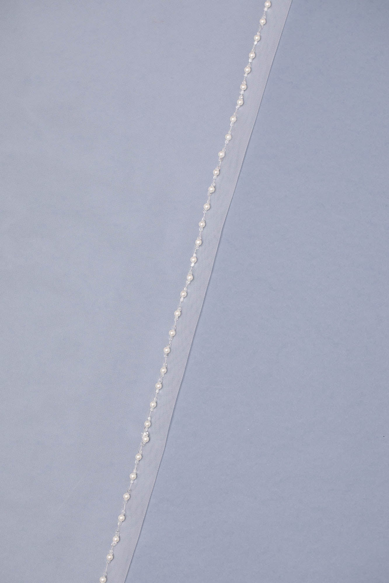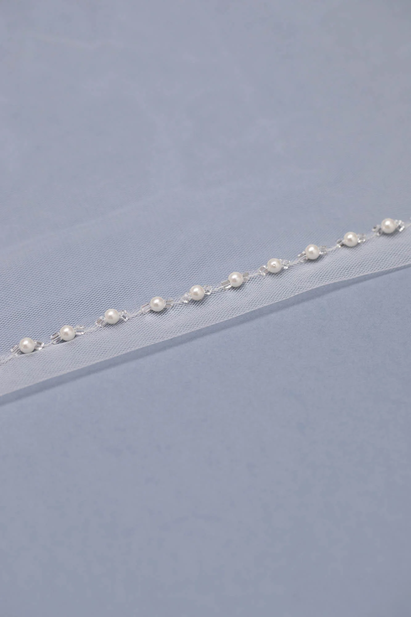 Velo in tulle lungo con bordo ricamato con cristalli e perle.