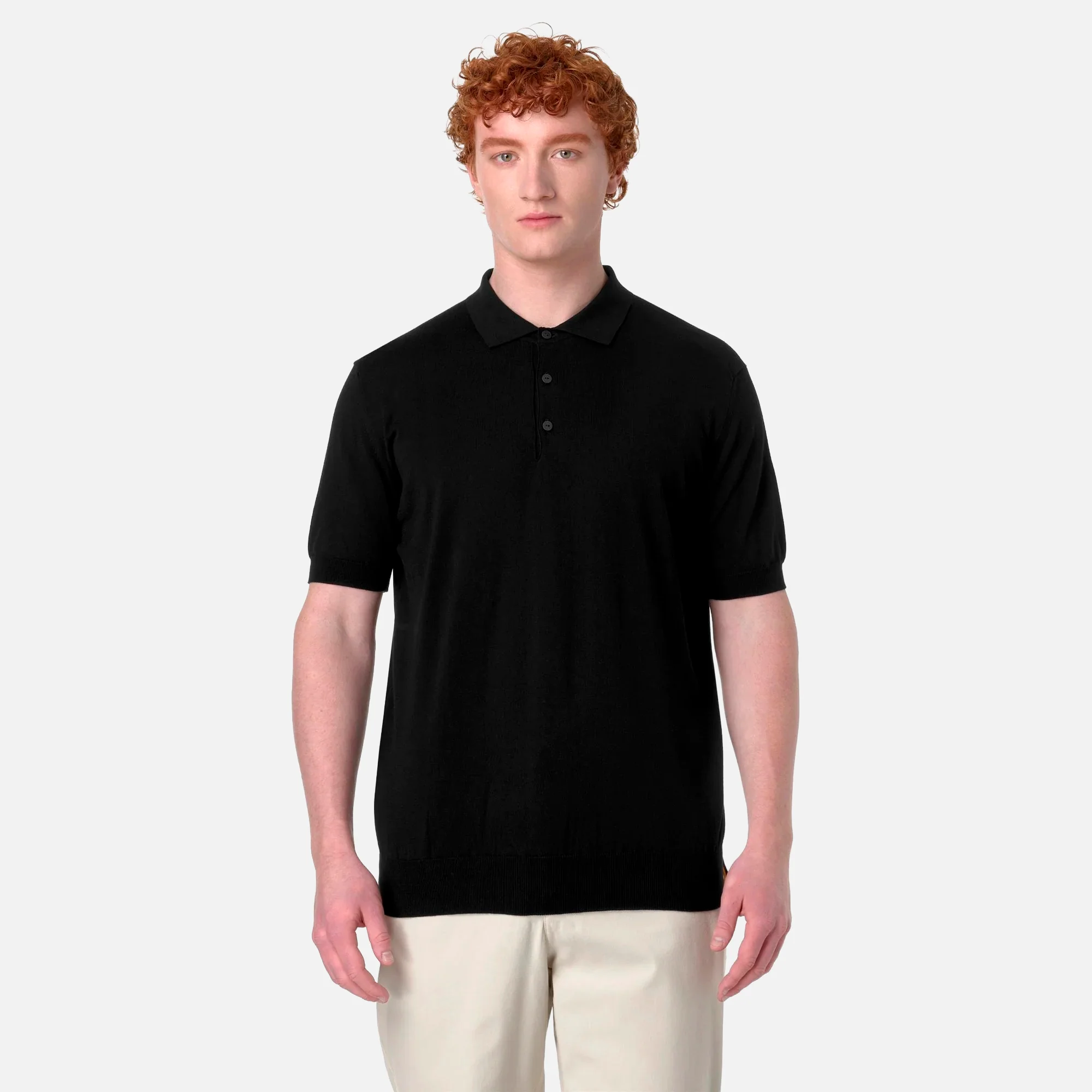 Filato cotone anti pillingMaglia rasataCollo a poloChiusura a tre bottoniBordi in costinaFitting regolareLogo rigato sul fondo100% Cotone K4126RW-USY