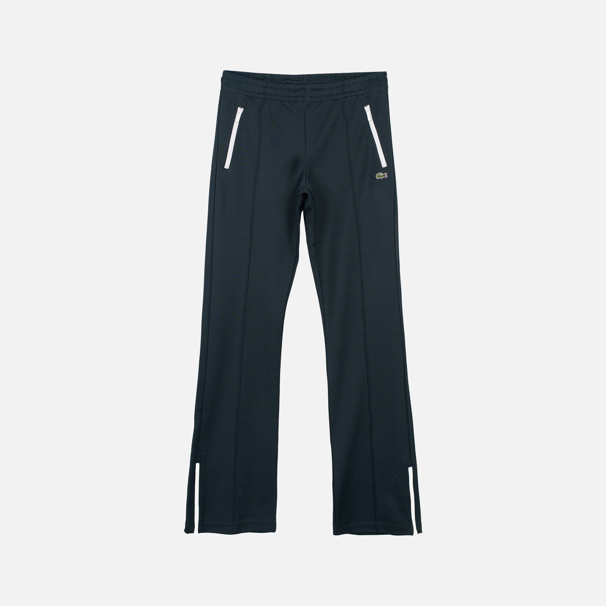 Piqué interlock in misto cotone organico e poliestere riciclatoTaglio svasatoPieghe sul davanti e dietroZip alle caviglieDue tasche laterali con zipCoccodrillo ricamato sulla gamba sinistraPoliestere 51%, Cotone 49% XF5253YZP