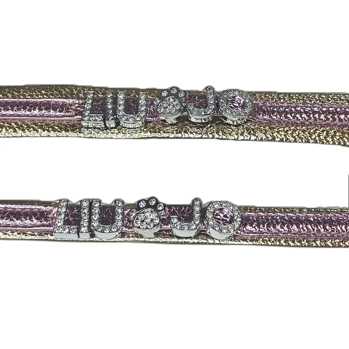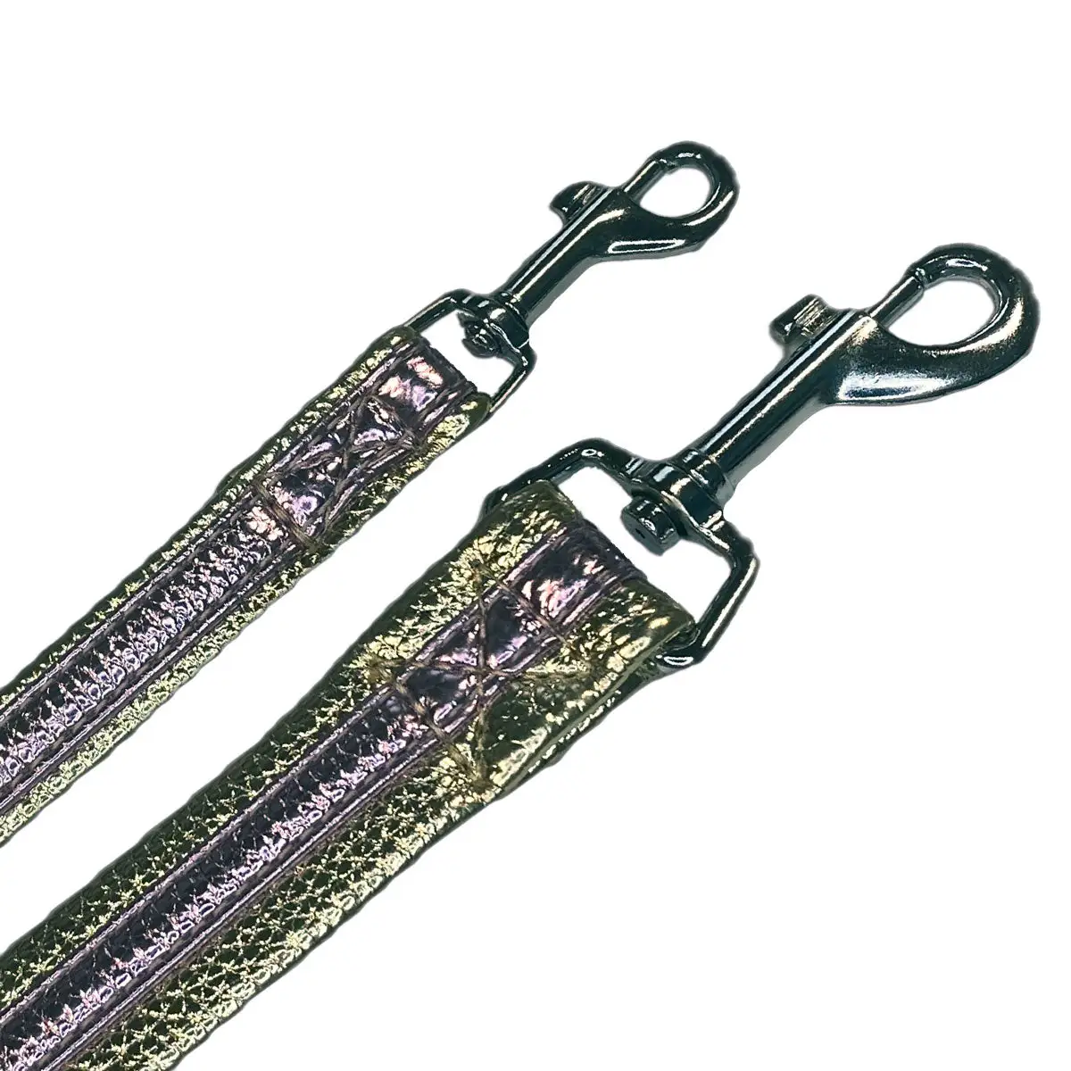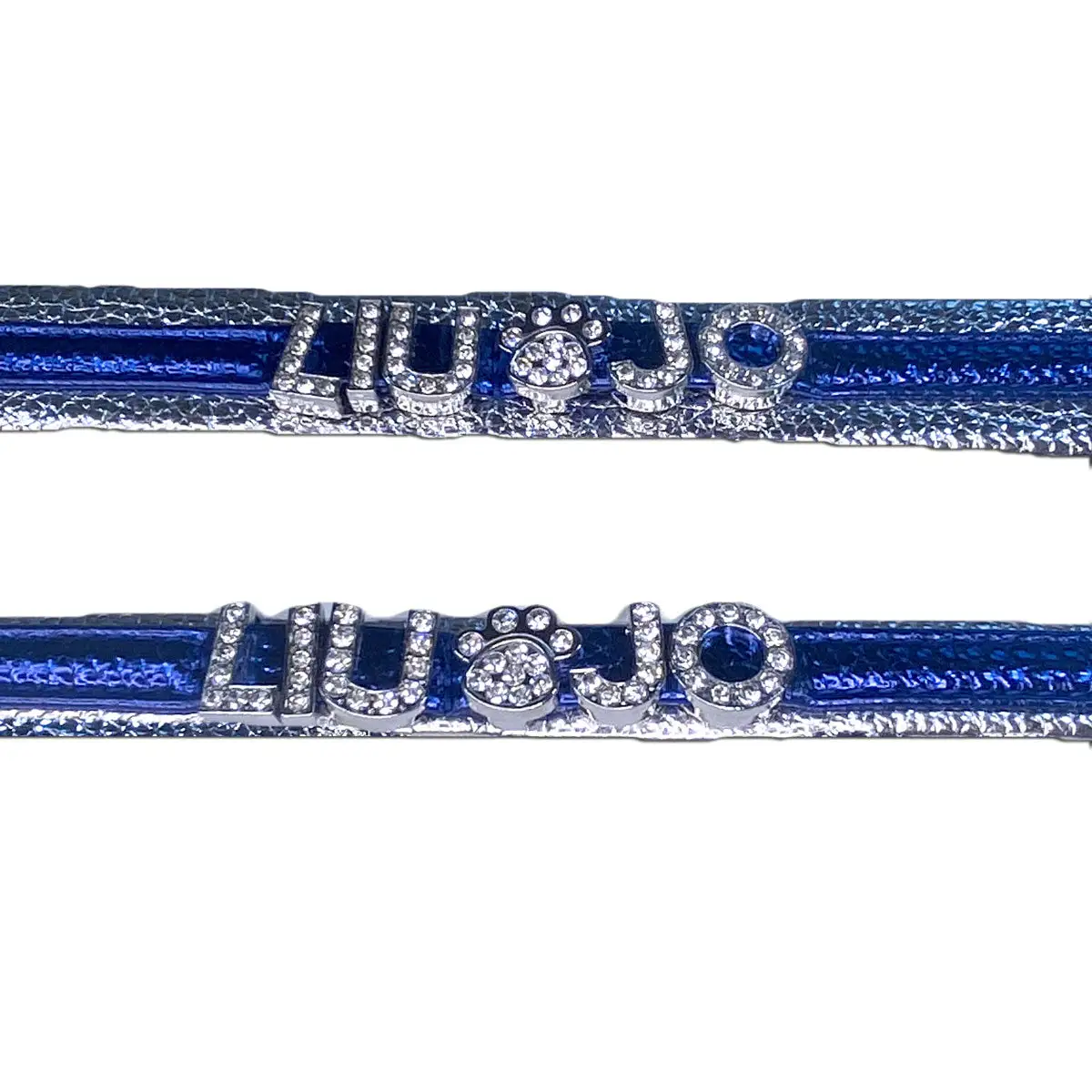 Guinzaglio metal bicolore in sintetico stampa dollaro con logo lettering in metallo con strass.