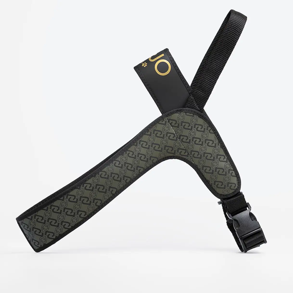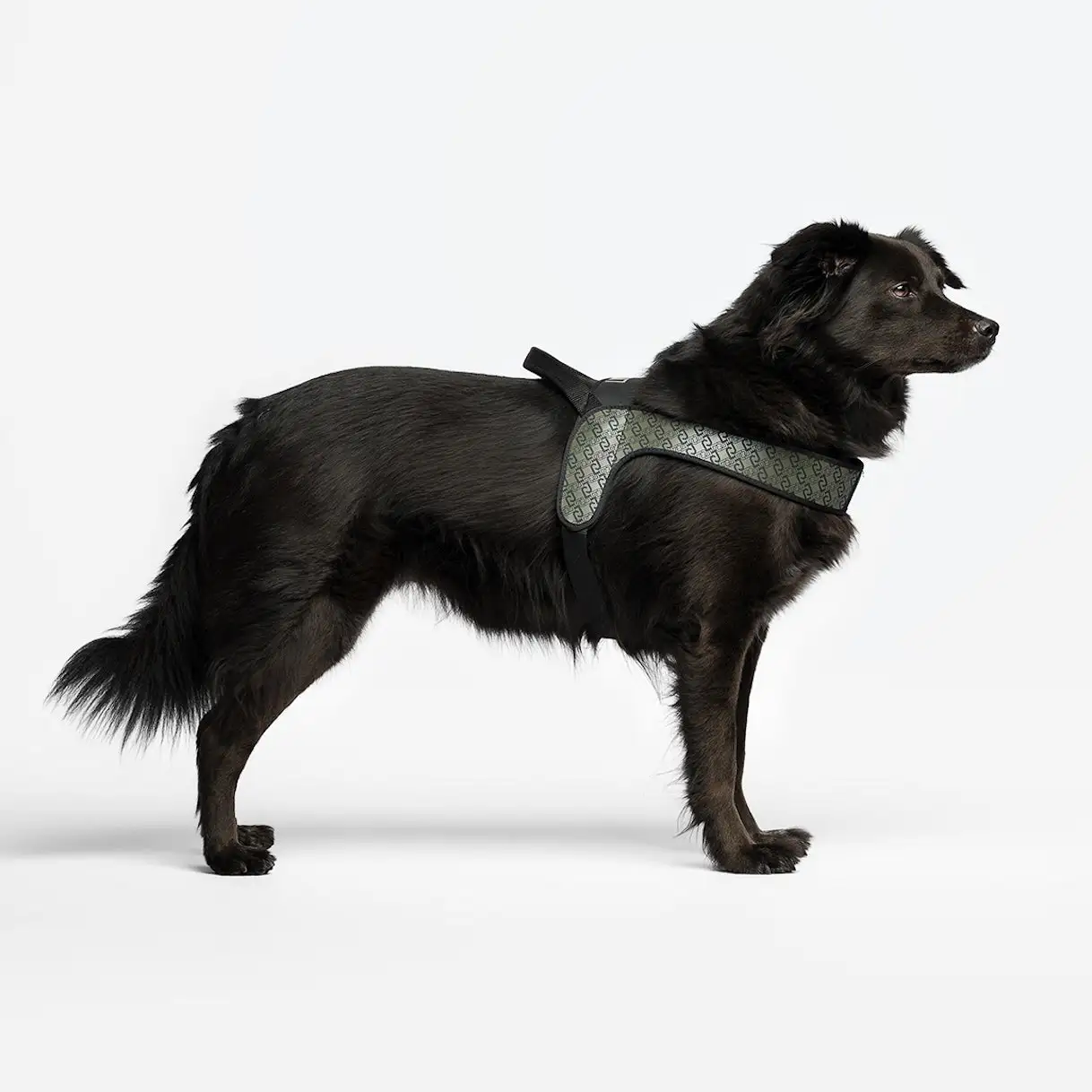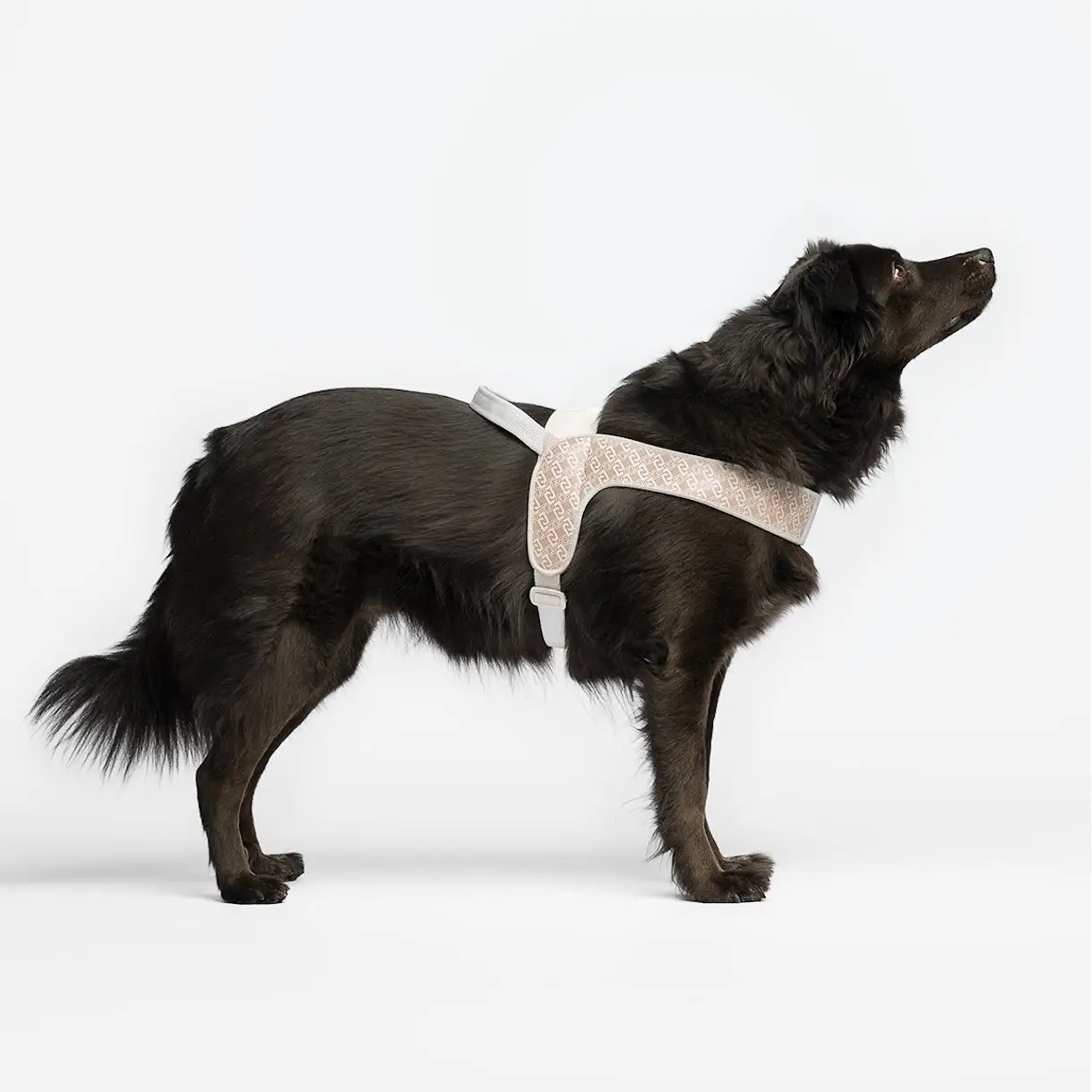 Pettorina pensata per cani di taglia grande, realizzata in PVC ecologico con stampa monogram disponibile in tre varianti di colore e anallergica. Dotata di una pratica maniglia imbottita che consente una presa salda ma confortevole.