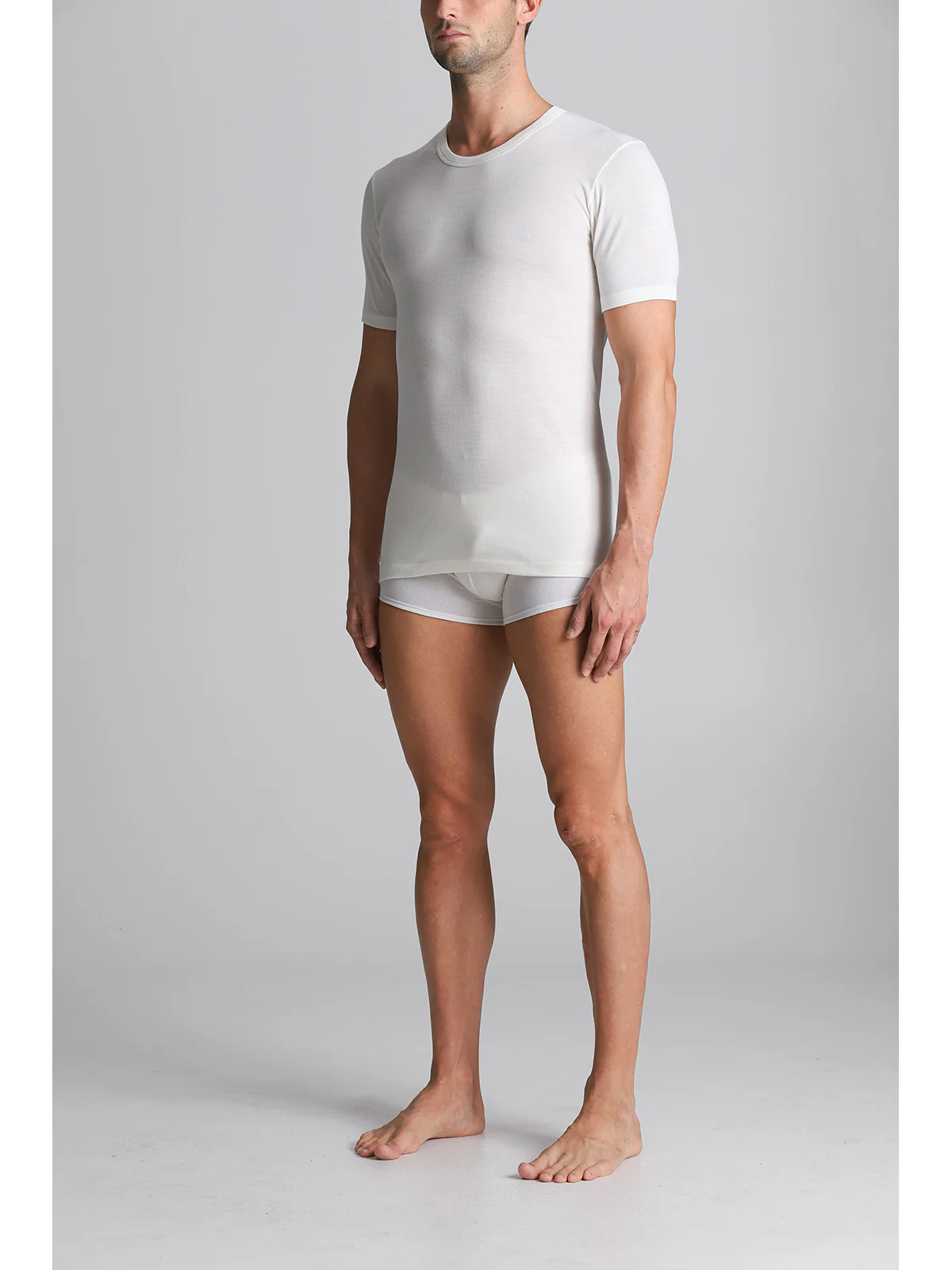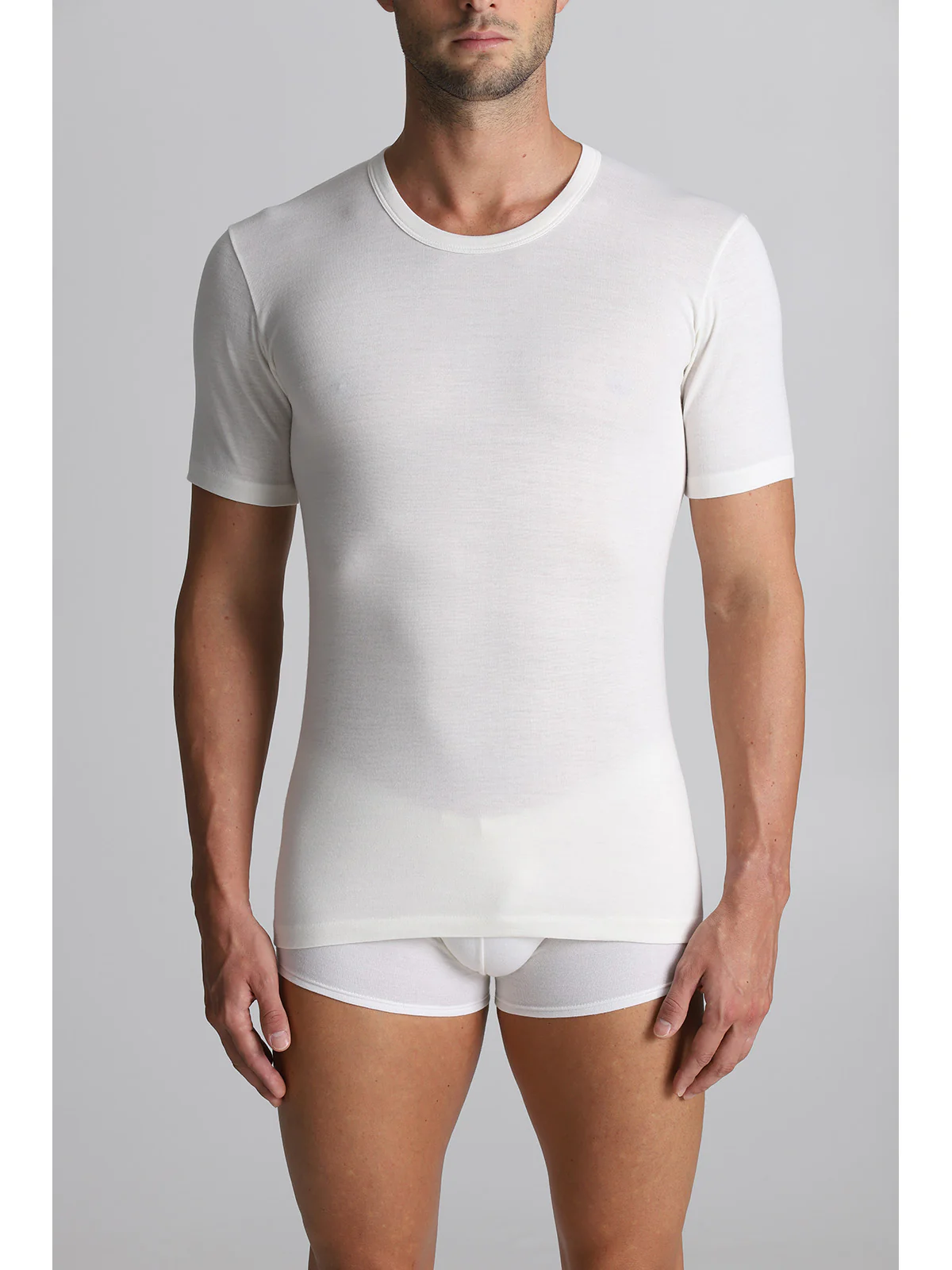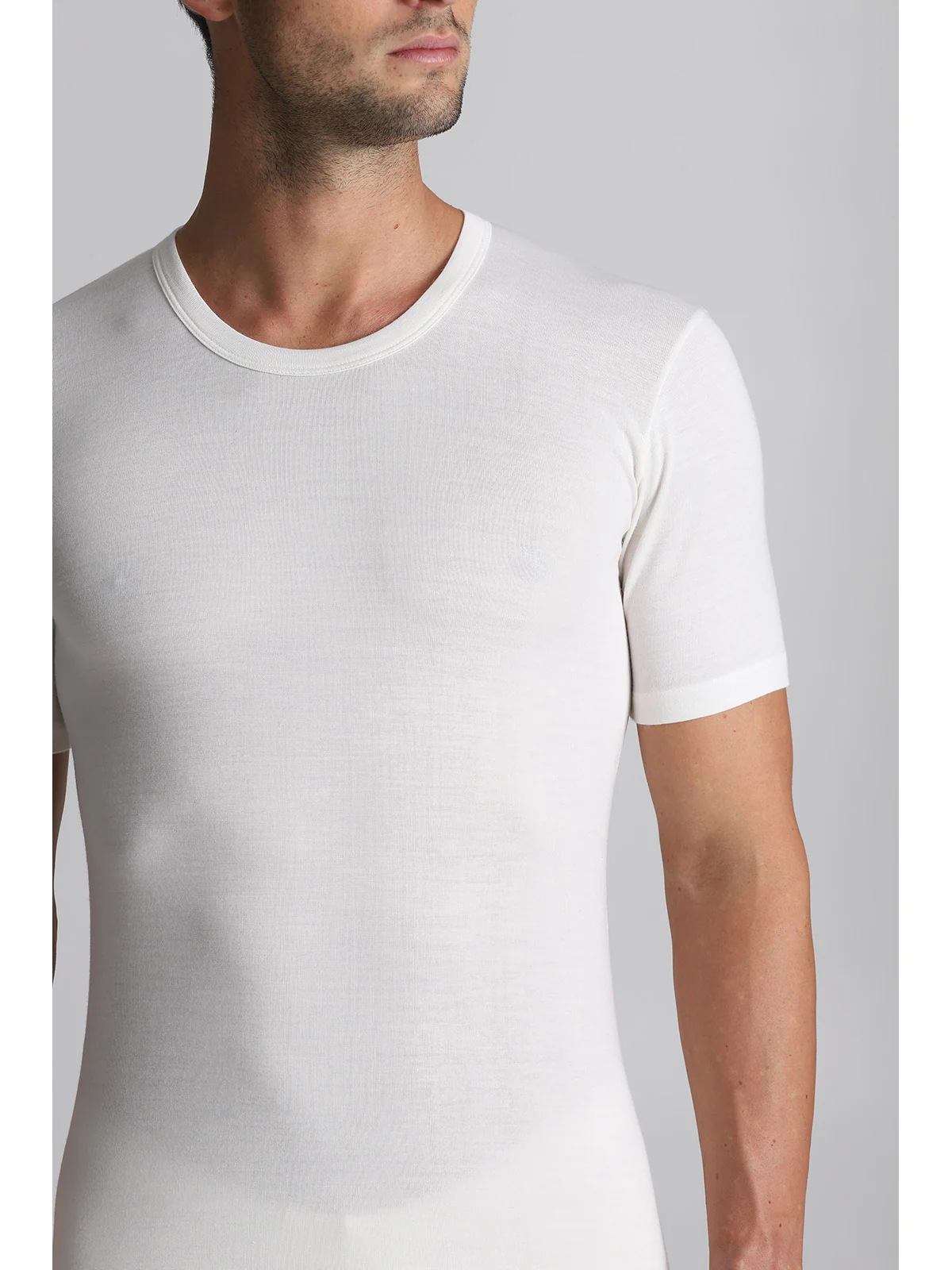 Maglietta intima uomo modello mezza manica in confortevole costina Double Lana e Cotone: Calda lana fuori e morbido cotone sulla pelle.