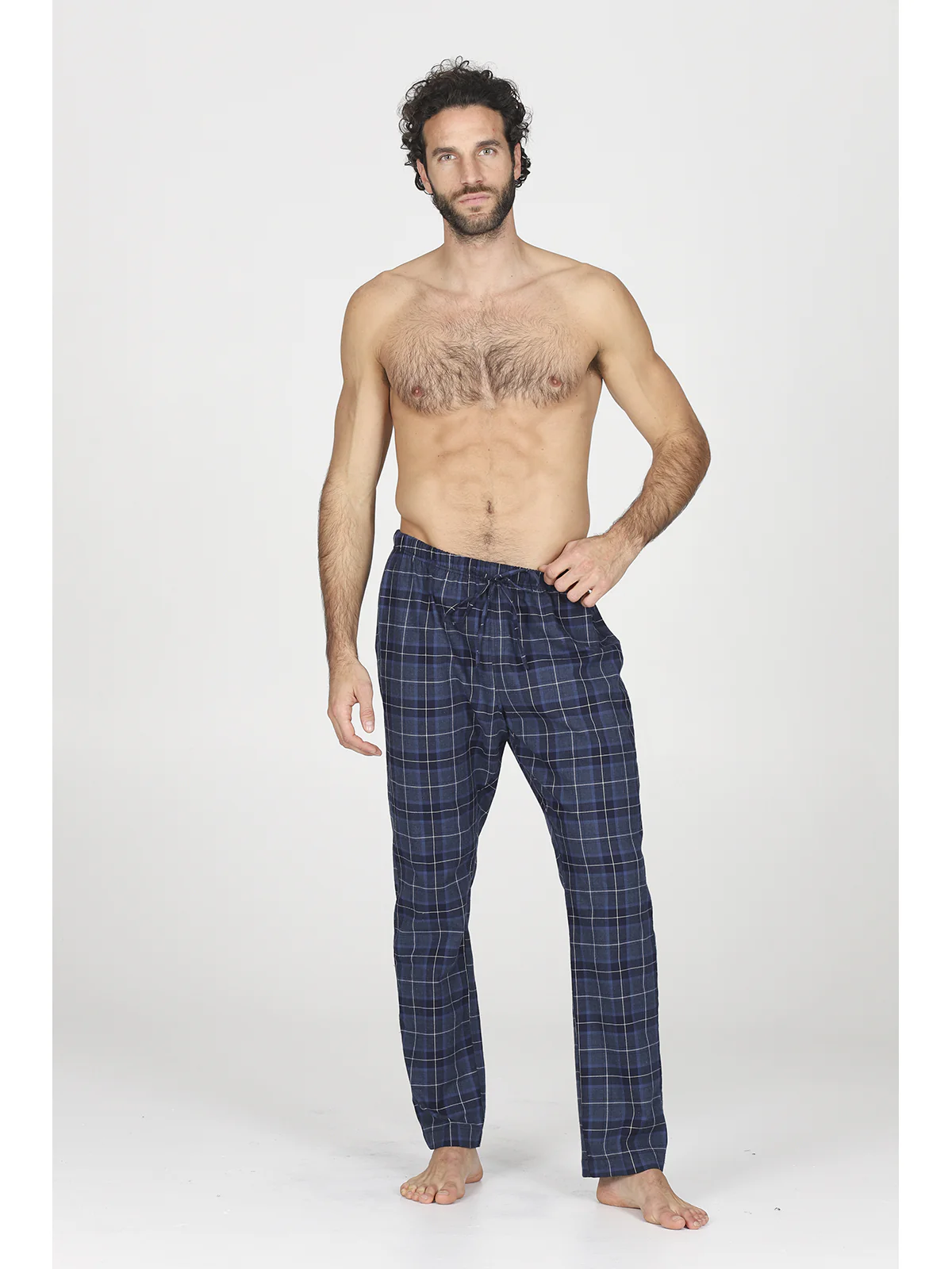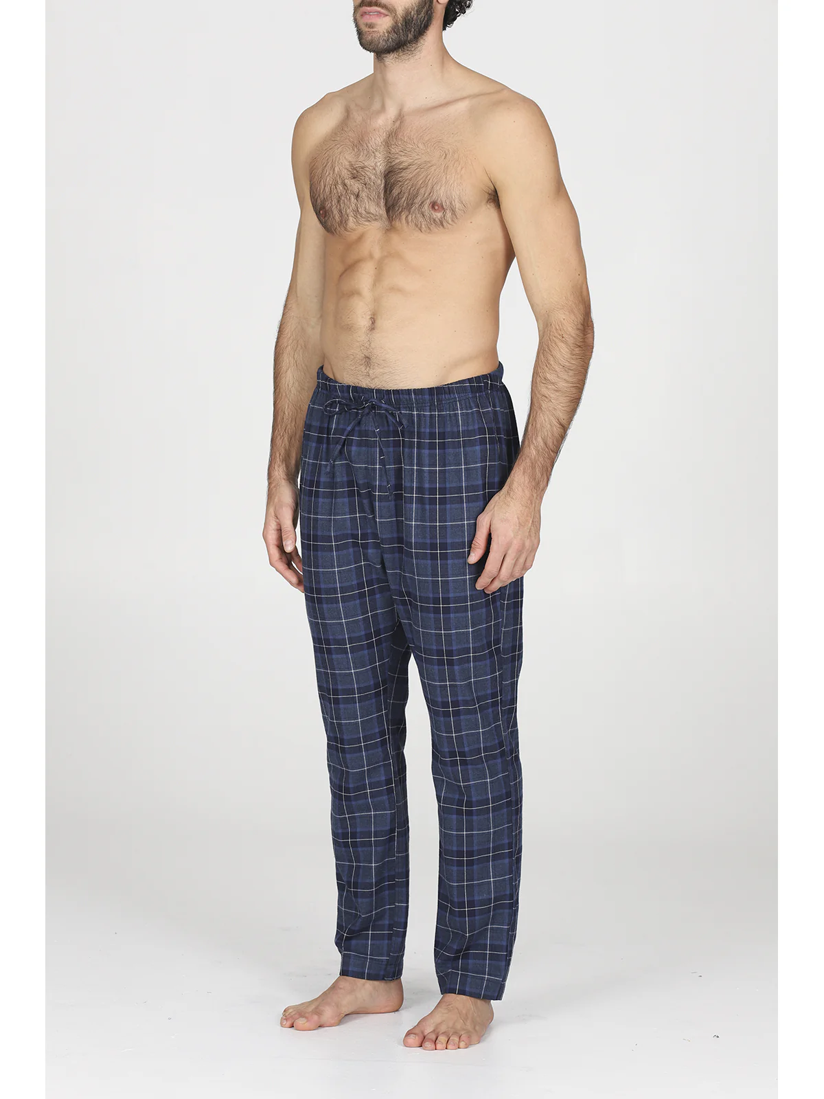 MORBIDA E CALDA FLANELLA DI PURO COTONE PANTALONE COULISSE REGOLABILE SENZA POLSINI DISEGNO SCOZZESE BLU COMFORT ECCEZIONALE CLASSICITA’ SEASONLESS