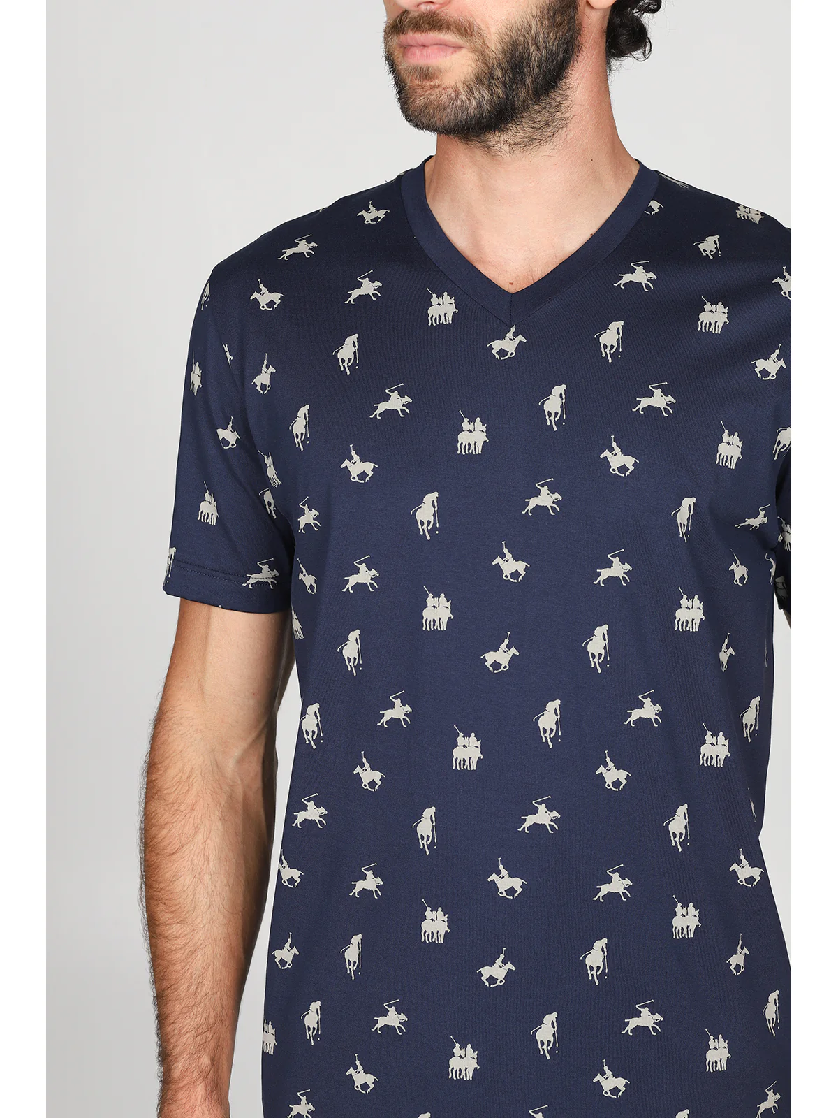 Pigiama corto v in leggerissimo jersey di puro cotone fantasia “sport polo”