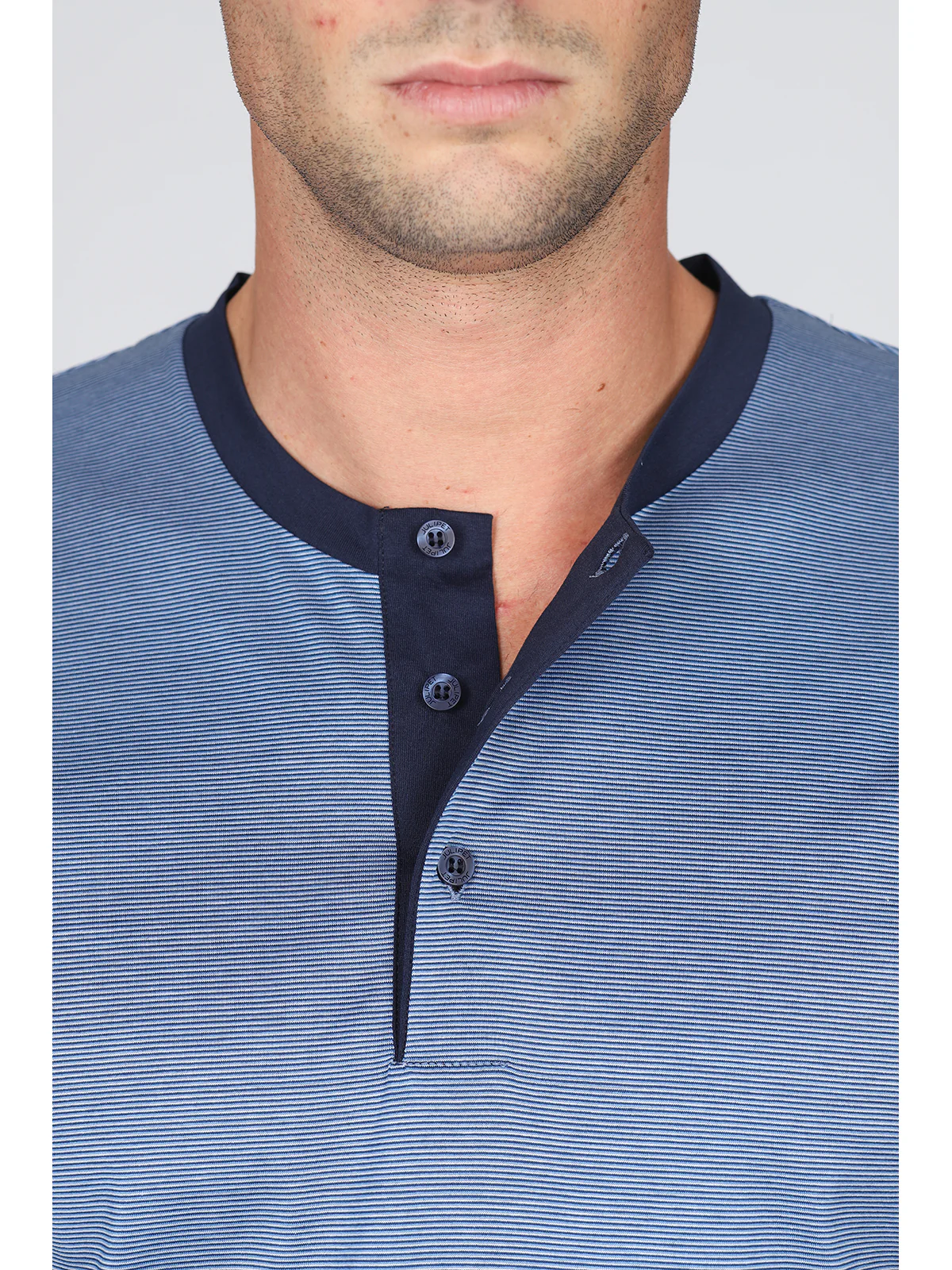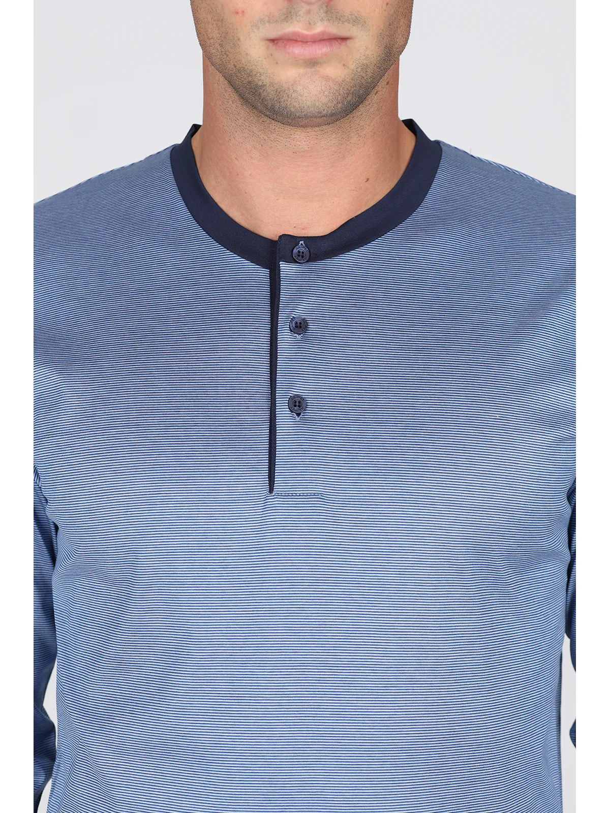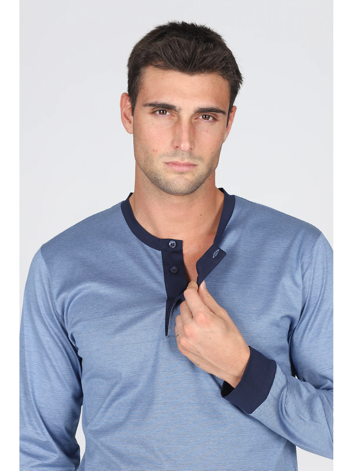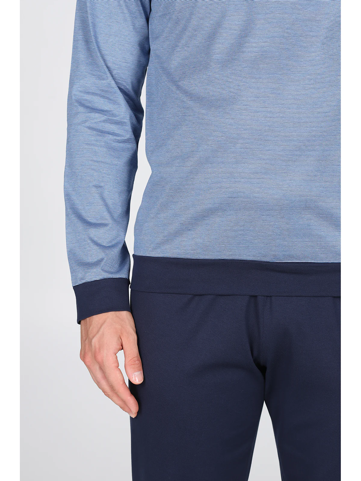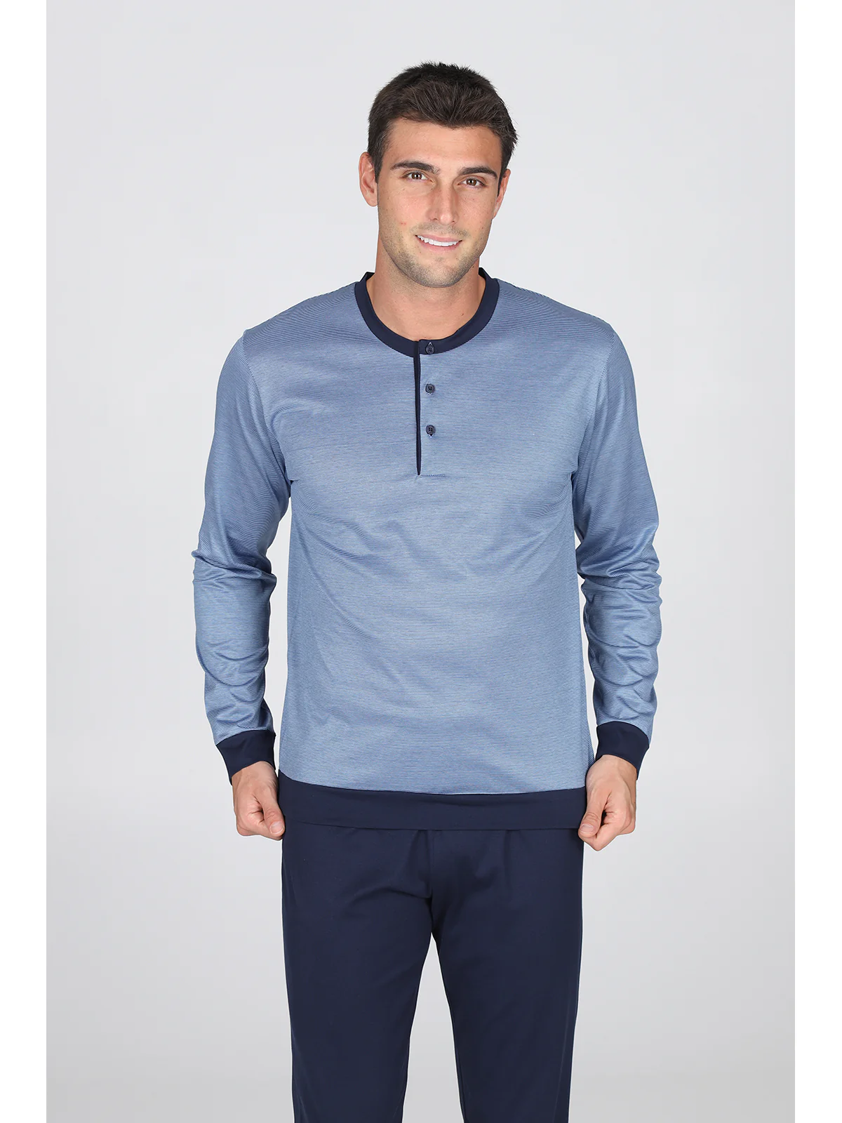 Pigiama in pregiato 100% filoscozia blu, con polsini