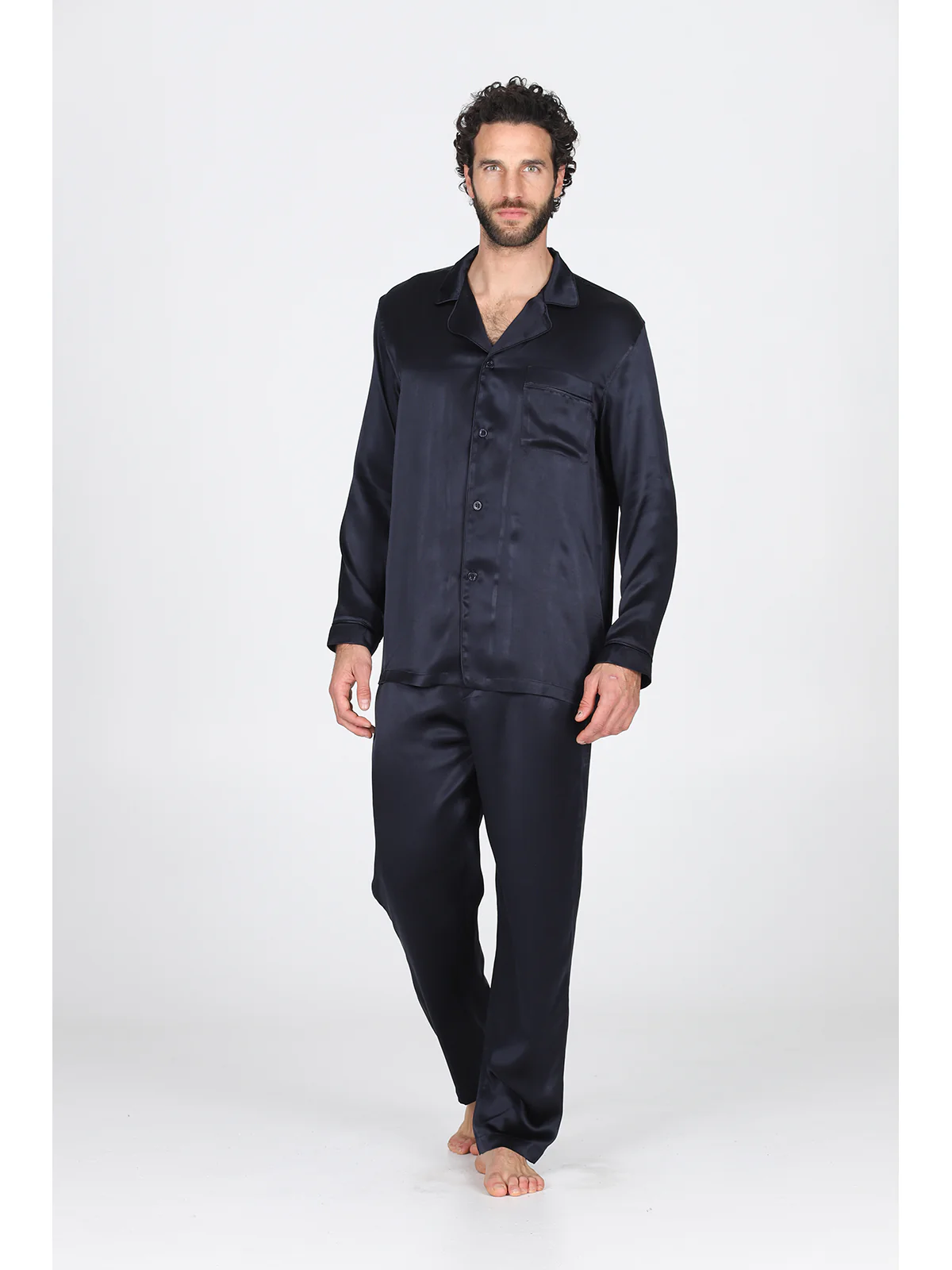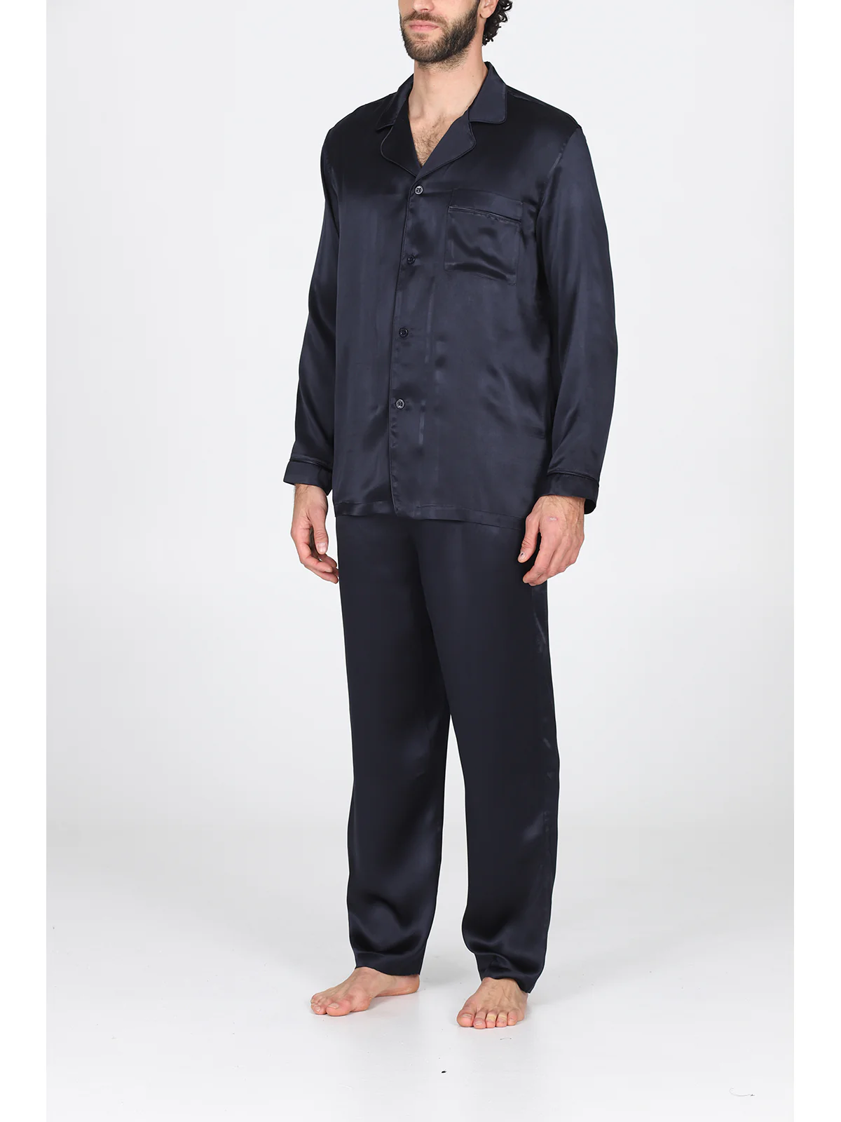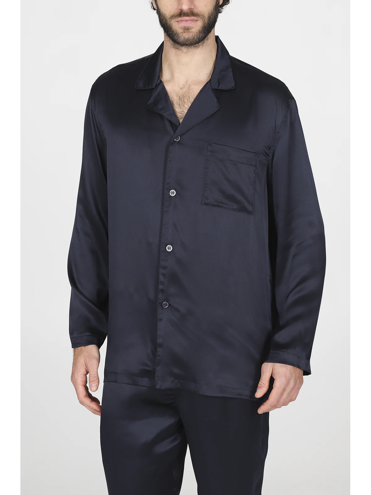 Pigiama in pregiato raso di pura seta blu, modelllo classico uomo