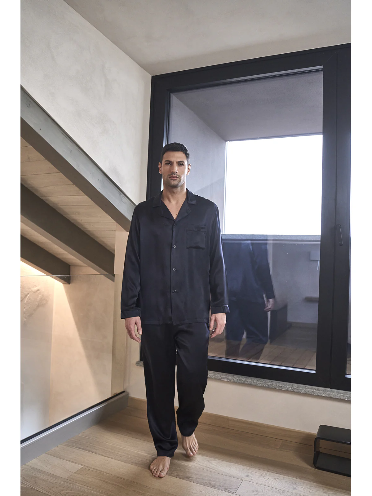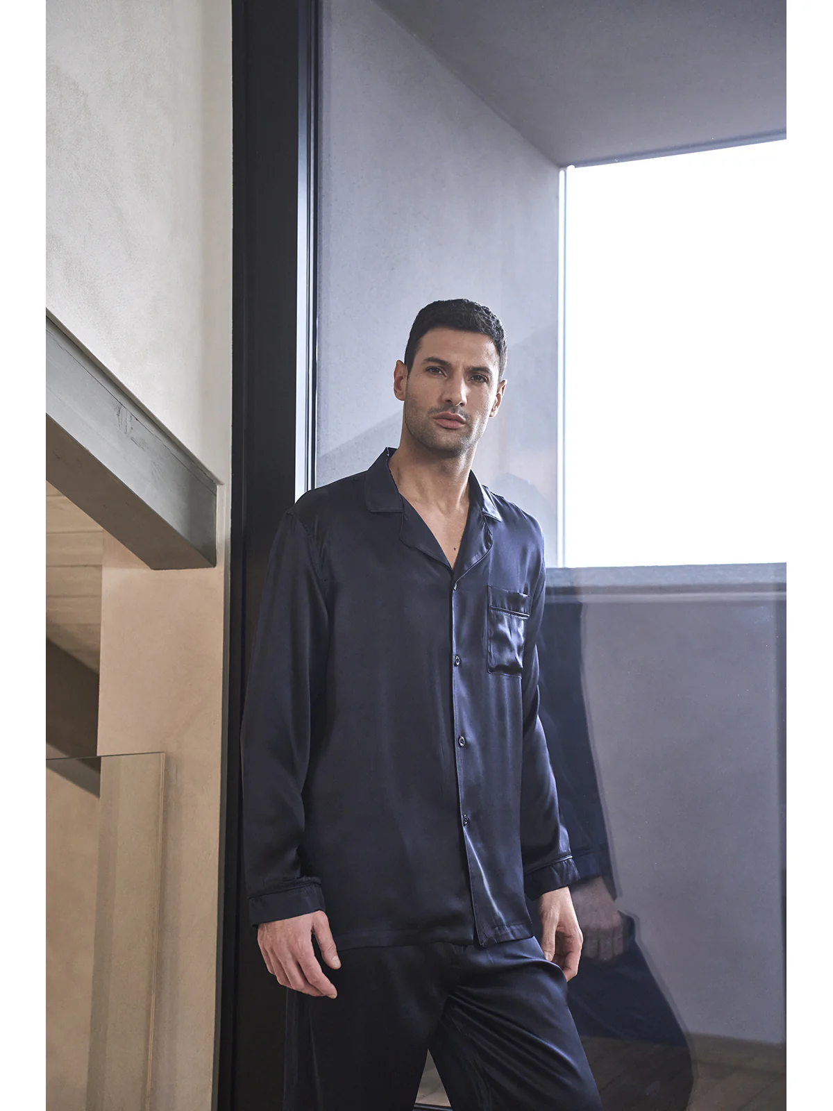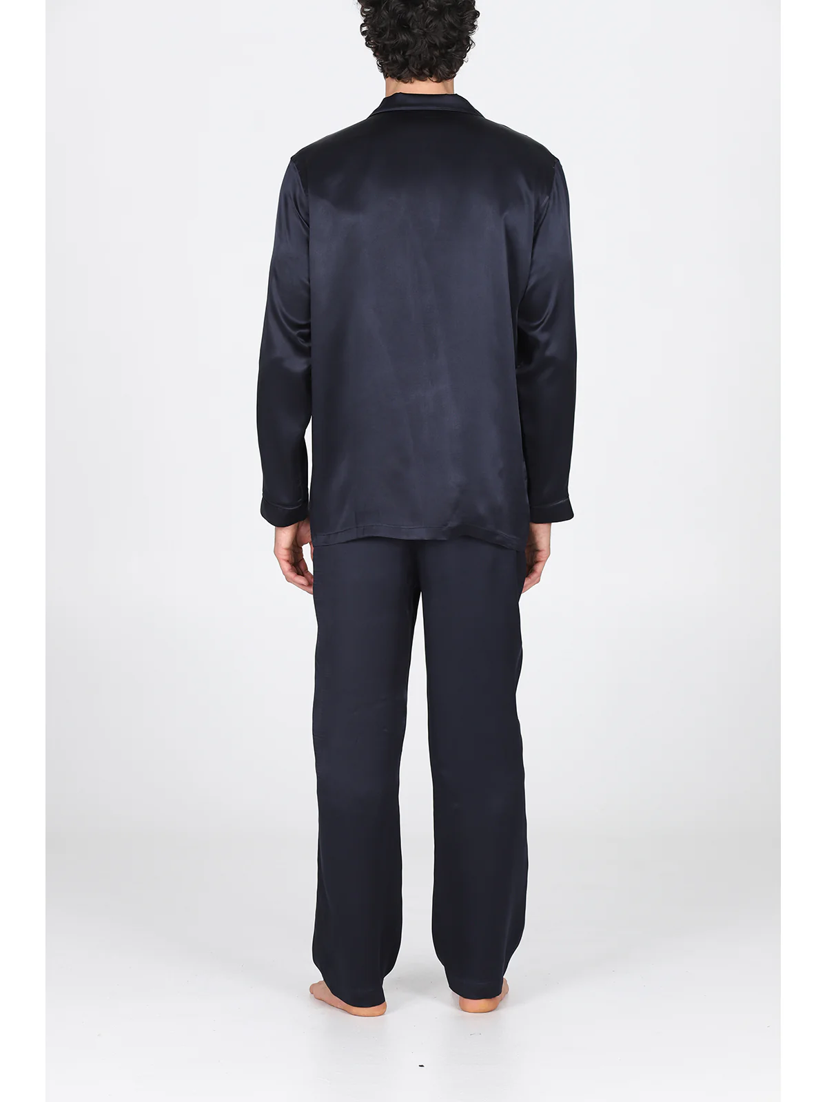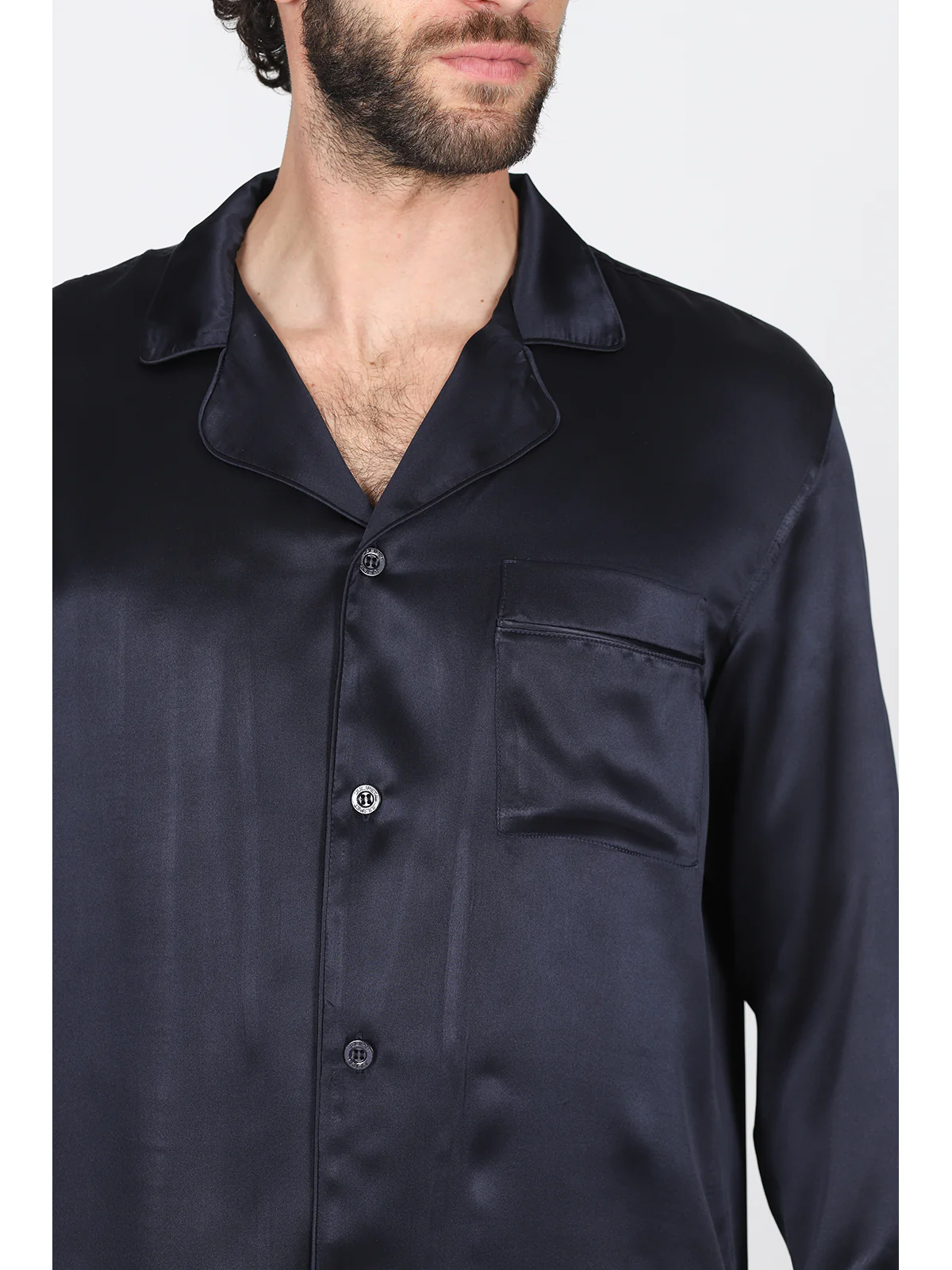 Pigiama in pregiato raso di pura seta blu, modelllo classico uomo