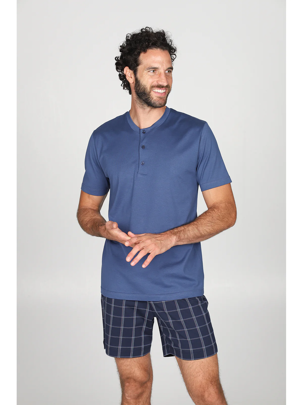 Pigiama in superleggero jersey di puro cotone, fantasia scozzese sui pantaloncini