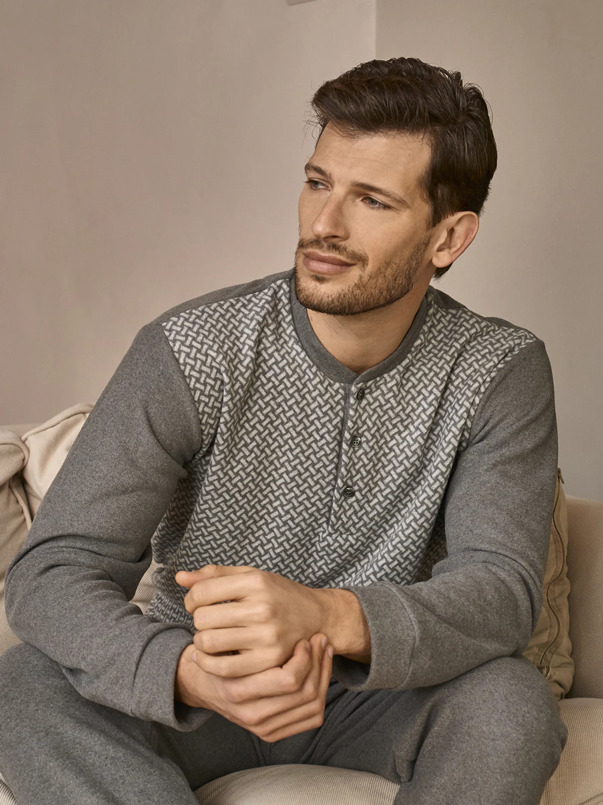 Caldo pigiama in cotone jacquard