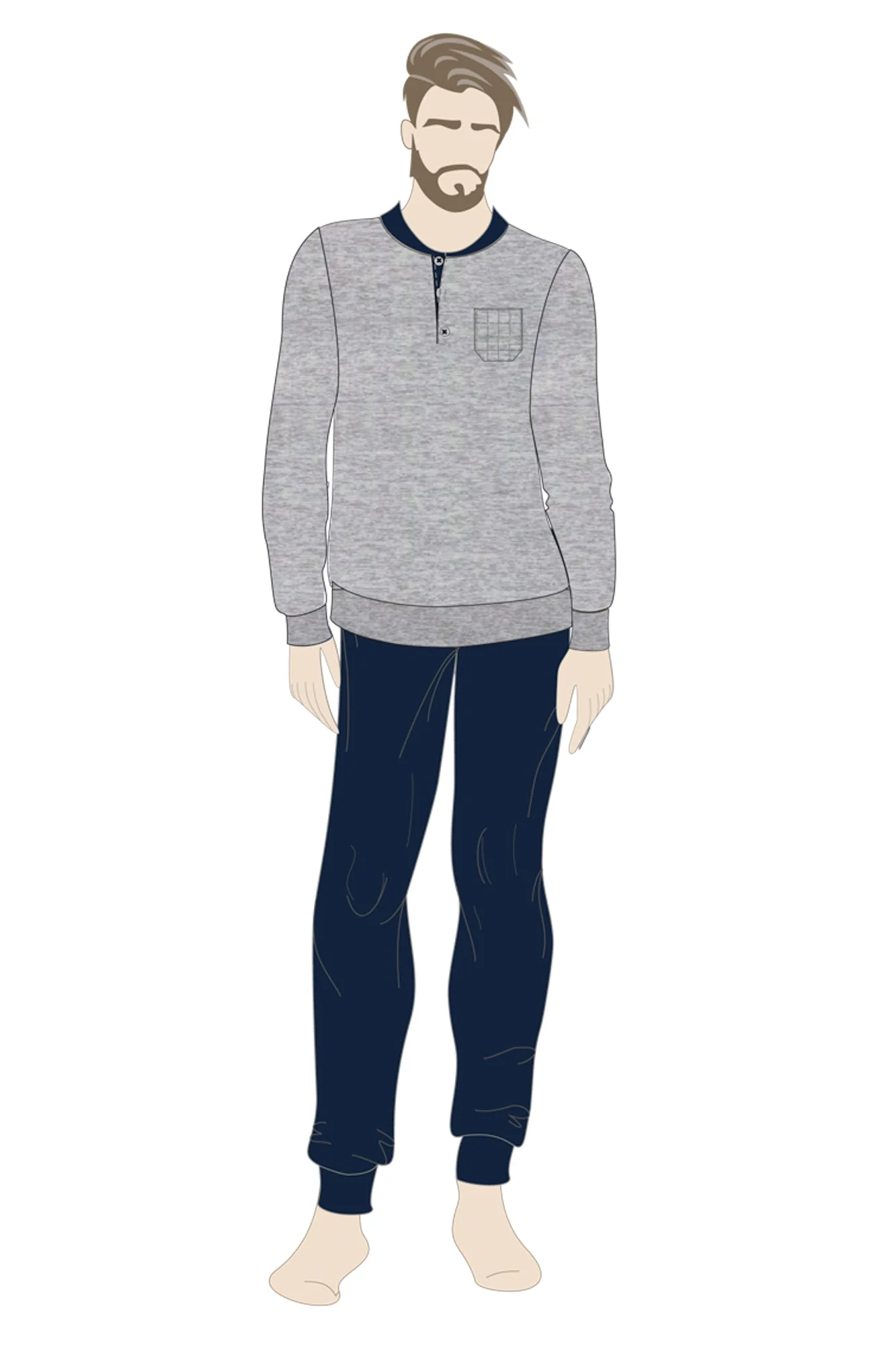 Comodo, pratico e dal design moderno, questo pigiama lungo da uomo e’ realizzato in cotone morbido e traspirante, perfetto per offrire calore leggero e una piacevole sensazione sulla pelle durante le notti piu’ fresche. Composizione : 88%cotone-12%poliestere