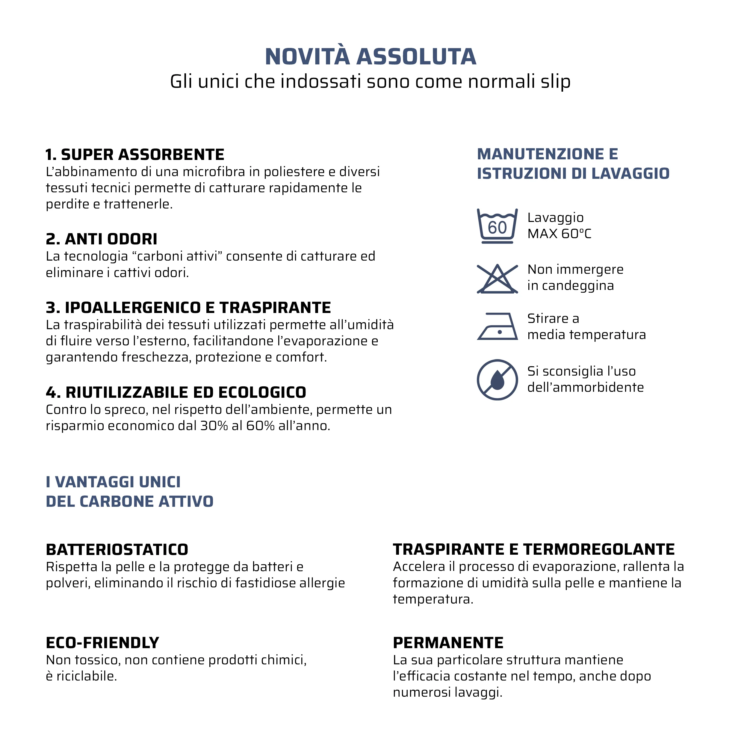 Da indossare e lavare come un comune e normale slip.